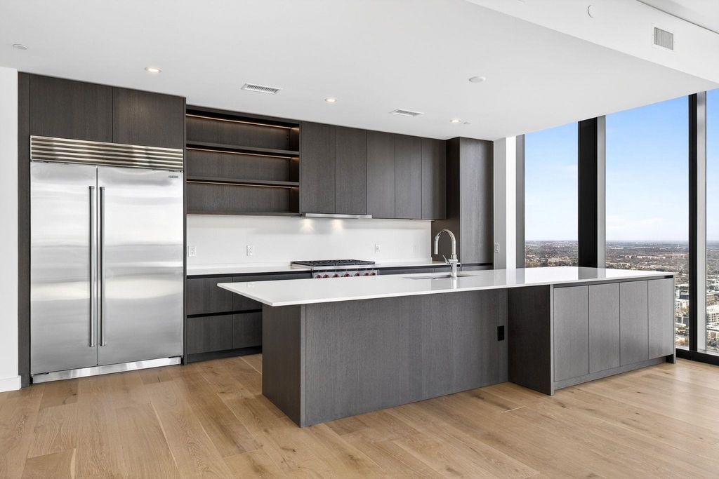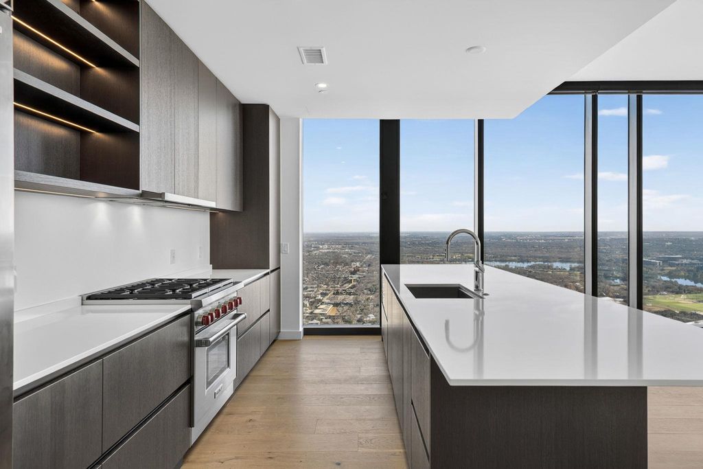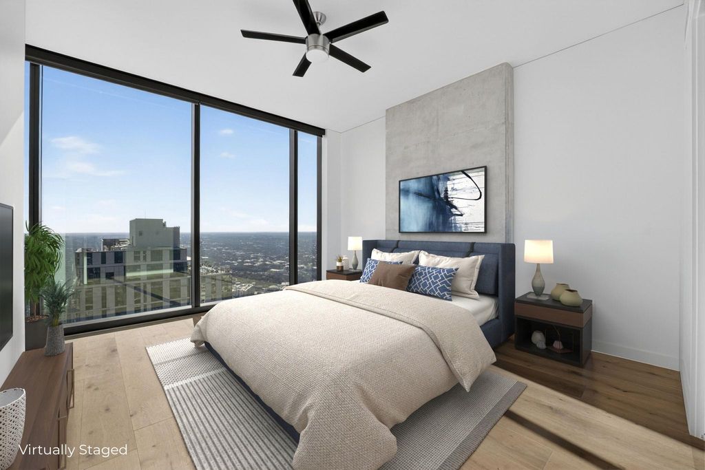 Perched on the 50th floor, this never-lived-in, southeast-facing three-bedroom, three-bath residence at The Modern Austin Residences offers an elevated living experience well above the energy of the city. Floor-to-ceiling windows fill the home with natural light and frame sweeping river views, while the height of the residence ensures exceptional privacy and quiet, far removed from Rainey Street activity below. Interior finishes include 10'4" ceilings, European oak engineered flooring, custom Italkraft cabinetry, ceiling fans, and electric window shades throughout. The kitchen is outfitted with Wolf and Sub-Zero appliances, built-in oven and microwave, and clean white quartz countertops. Bathrooms are finished with striking dark quartzite natural stone, and a stacked washer and dryer add everyday convenience. Residents enjoy access to more than 19,000 square feet of premium amenities, including a 25-meter lap pool and spa, indoor and outdoor lounges, private dining and grilling areas, a state-of-the-art fitness center, yoga studio, business center, sky lounge, dog park, and 24/7 concierge services. Located in the heart of the Rainey Street District with direct access to riverfront walking and biking trails, this exceptional home blends luxury, tranquility, and Austin's vibrant urban lifestyle. Be the first to call this remarkable high-rise residence home. Please note that some images are virtually staged (property isn't furnished). Owner is a licensed real estate agent in the state of Texas, and will be managing the property.