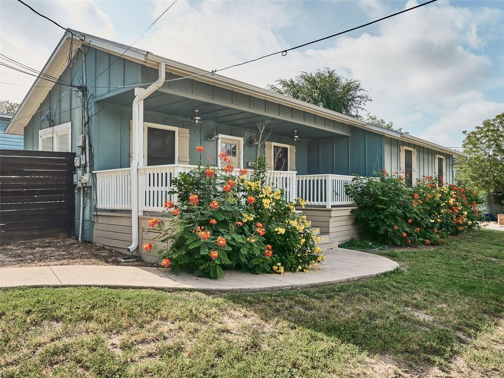 Positioned in one of East Austin's most dynamic neighborhoods, this impeccably maintained and stylishly updated single-story residence offers exceptional investment appeal. Leased at top market rates, the home features 3 spacious bedrooms and 2 full baths across a classic yet modern floor plan. The curb appeal is undeniable"”lush landscaping, a manicured front yard, and a wide covered front porch perfect for relaxing with morning coffee or evening cocktails. Step inside to a light-filled interior adorned with a neutral color palette, designer lighting, and sleek ceiling fans. The open-concept kitchen is a true showpiece with gleaming granite countertops, stainless steel appliances, white cabinetry, and a breakfast bar ideal for casual dining or entertaining. The kitchen flows effortlessly into the expansive living area"”creating a comfortable and inviting central gathering space. The primary suite is thoughtfully designed with a walk-in closet and en-suite bath featuring an updated vanity and a modern step-in shower. Two additional bedrooms and a second full bath complete the layout. Enjoy a fully fenced backyard retreat with a shaded porch and a dedicated storage shed. With carpeting only in the bedrooms and upscale finishes throughout, this East Austin gem is turnkey and ideally located near major hotspots, employers, and campus culture.