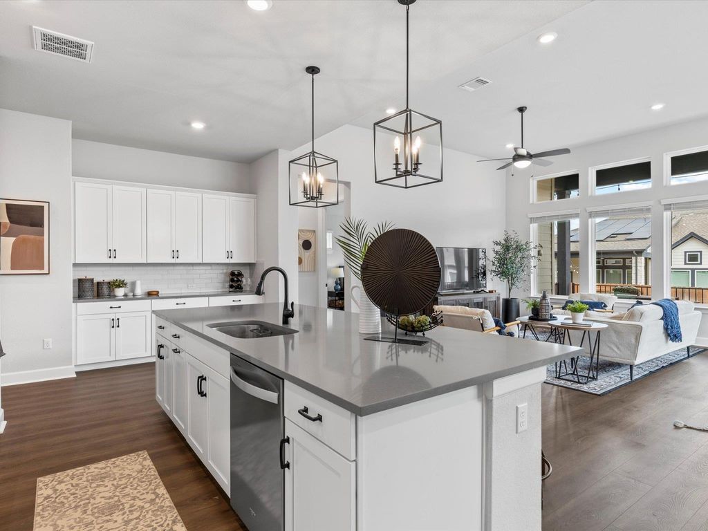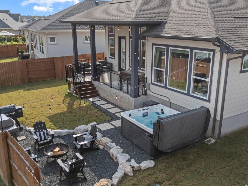 Move-in-ready single-story contemporary home in Easton Park, one of SE Austin's most vibrant master-planned communities. Residents enjoy miles of trails, parks, concerts, food-truck nights, and a standout amenity center with a resort-style pool"”an active, welcoming environment that continues to grow. This meticulously maintained David Weekly home was built in 2021 and truly reflects that pride of ownership you see throughout Easton Park. Beautifully cared for, move-in ready, and part of a community that's only getting better year after year. Inside you will find 4 bedrooms, a dedicated office, 3 full baths, and bright open floor plan living. High ceilings, recessed lighting, modern fixtures, and durable wood-look vinyl plank flooring create a clean, cohesive feel. Stacked windows along the living and dining areas fill the space with natural light and frame backyard views. The kitchen features an oversized island with seating, sleek quartz countertops, built-in stainless-steel appliances, subway tile backsplash, and timeless shaker cabinetry. The private primary suite is secluded away at the back of the home and includes a dual-vanity ensuite bath with a soaking tub, frameless walk-in shower, and generous closet. Two secondary bedrooms share a full bath in a separate hall, while the fourth bedroom is paired with its own nearby guest bath alongside the laundry/mud room. The backyard is designed for relaxed outdoor living with a covered porch, lush lawn, xeriscape patio, fire pit area, and space for a hot tub - perfect for unwinding under the stars. Located in the Mirabel Park section, you're just blocks from pocket parks and moments from Easton Park's 350 acres of green space, 13 miles of trails, and the 14,000-sq-ft amenity center with a pool, fitness center, and dog park. Close to the new H-E-B, Southpark Meadows, and major routes for easy access to Downtown and the airport. Schedule your showing and come experience this exceptional Easton Park home.