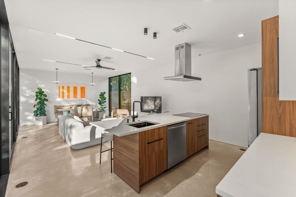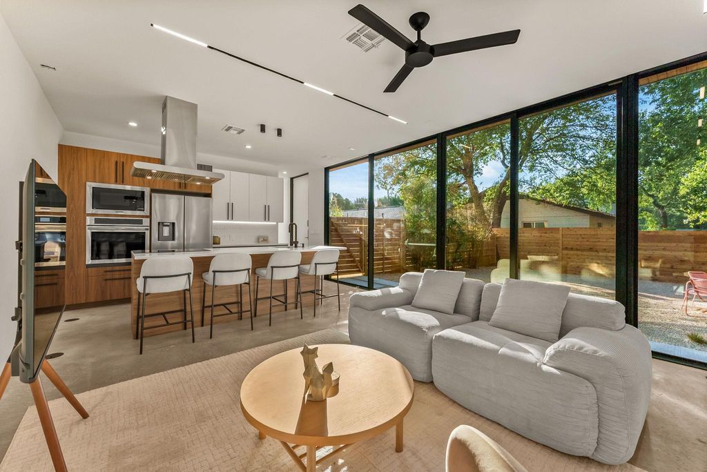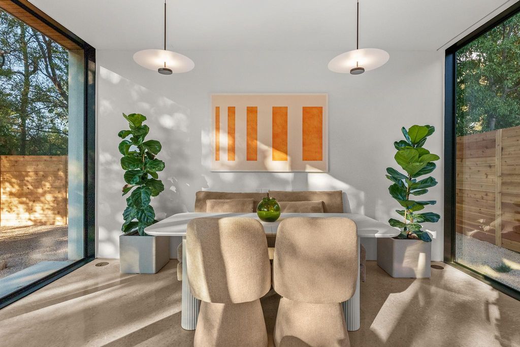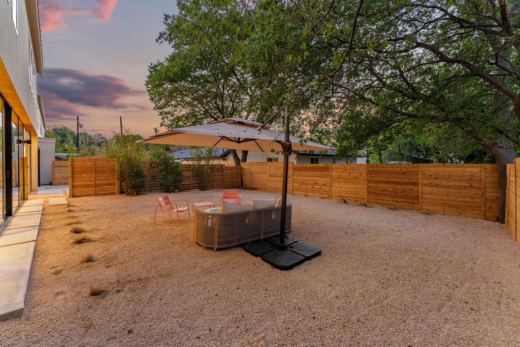 Welcome to 78704 living at its finest "” where timeless Japanese minimalism meets the breezy soul of Bali in this brand-new, architect-designed two-story home. Tucked into South Austin's most coveted zip code, this 2-bed, 2.5-bath sanctuary blends form, function, and a touch of island whimsy in a space built to elevate everyday living. Step inside and be greeted by a dramatic open-concept main floor with polished concrete floors and a literal wall of windows on one side, and expansive floor-to-ceiling glass on the other, flooding the home with natural light and offering views of the private yard enclosed by a sleek wooden privacy fence. The streamlined kitchen is a chef's dream"”quartz wraparound countertops, tile backsplash, modern cabinetry, and a layout that flows effortlessly into a framed dining area, lounge-worthy living space, and a versatile workspace complete with abundant outlets. Recessed lighting, shadow-line walls, USB bedside outlets, concealed curtain tracks, frameless doors, and Wi-Fi light switches reflect the thoughtful attention to detail. Upstairs, both bedrooms feature solid oak floors and spa-like ensuite baths with terracotta-inspired tile, floating vanities, and concealed toilet tanks for a clean, modern aesthetic. The primary suite feels like a retreat, marrying warm textures with peaceful simplicity. Outside, the oversized yard is ready for lounging, entertaining, or a future cowboy pool. The reinforced carport offers future expansion potential"”add a guest suite or studio with separate access. Minimalist. Playful. Architectural. This home is not just built"”it's crafted for living well in 78704.