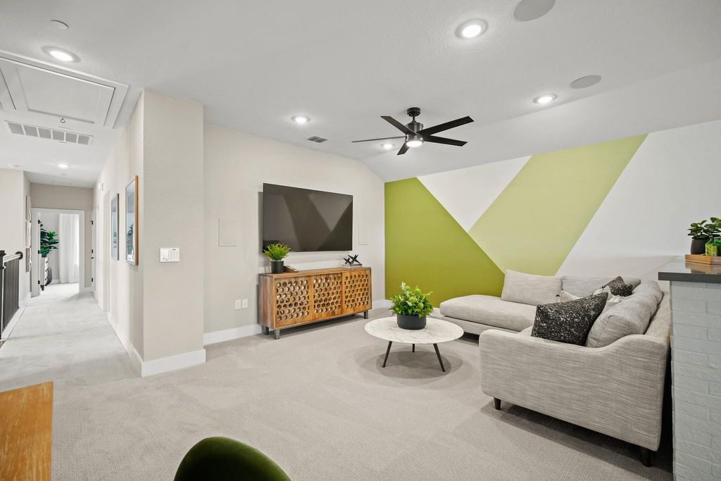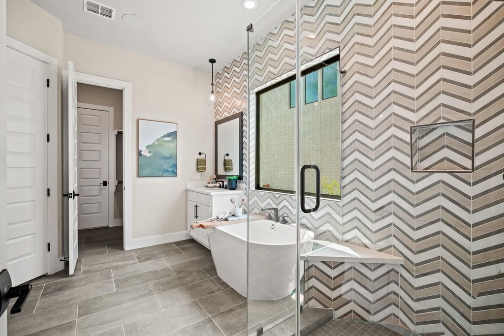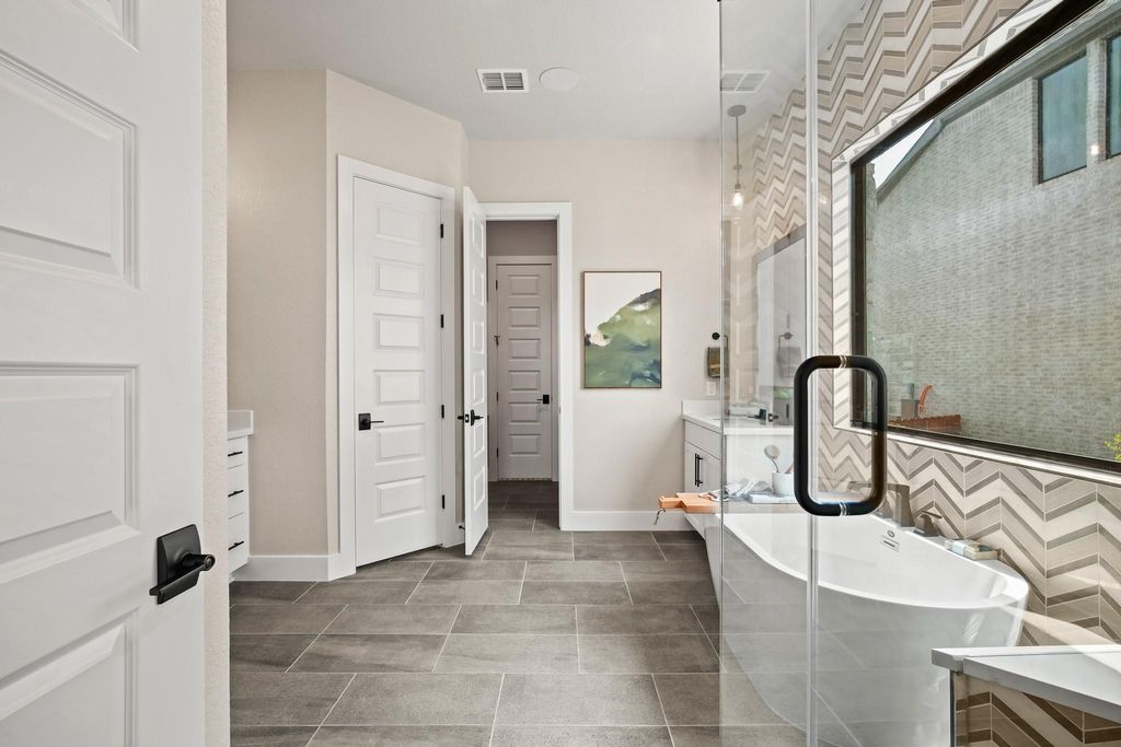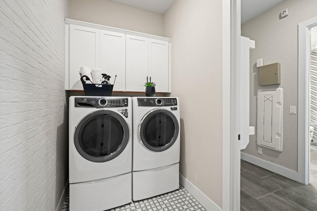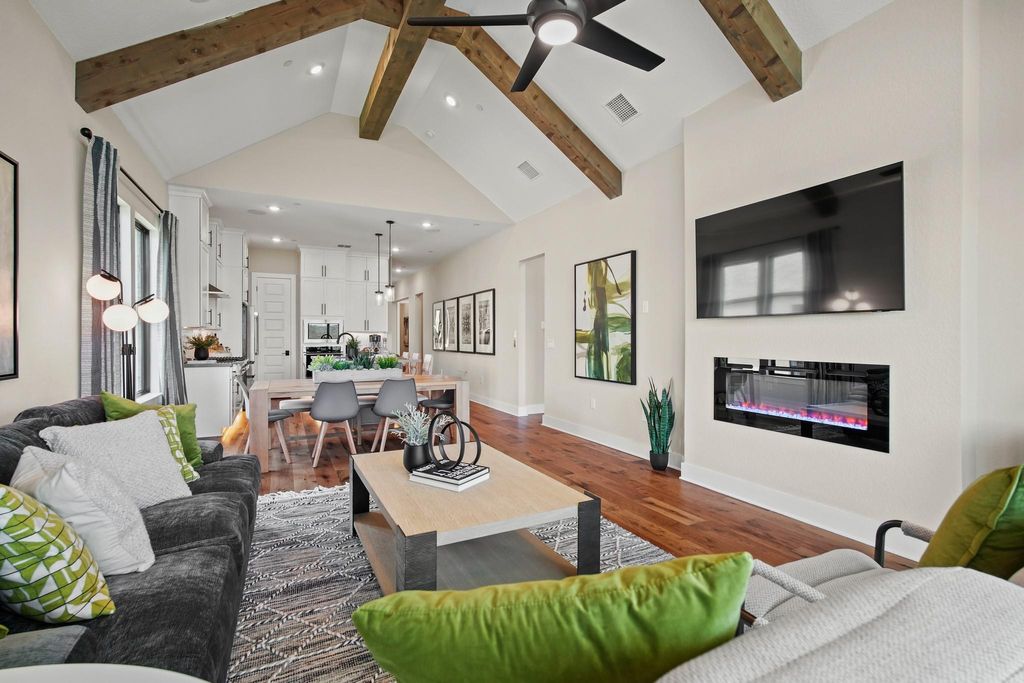 Do not miss out on this once-in-a-lifetime opportunity! Newmark Home's beautiful model home is for sale in the gorgeous Sweetwater community. This two-story Sierra floorplan features 4 beds, 3.5 baths, and a 2-car garage. When you walk in, take in all the glorious features this home has to offer, including a hard wood spiral staircase and flooring, top-of-the-line designer finishes, Quartz counter tops, accent lighting in the kitchen, 48'' allusion electric fireplace and solid wood beams in the family room. This home consists of many luxury upgrades so you can live in comfort and style, and all furnishings are negotiable if you love the interior design of this home. In the primary bedroom you will find a sliding glass door that leads out to the covered patio to take in the picturesque views as well as a free-standing tub in the primary bath, and large walk-in closet. Upstairs, host game nights with your friends and family in the game room and have movie nights in the media room when you're looking for some entertainment. Relax on the upstairs balcony and enjoy those delightful west Texas sunsets over-looking the hill-country. Lastly, the extended covered patio includes an outdoor kitchen with a refrigerator, deluxe grill, and a stunning fireplace. This home will not be on the market long - call Dori at 612-720-1090 to schedule a viewing today!