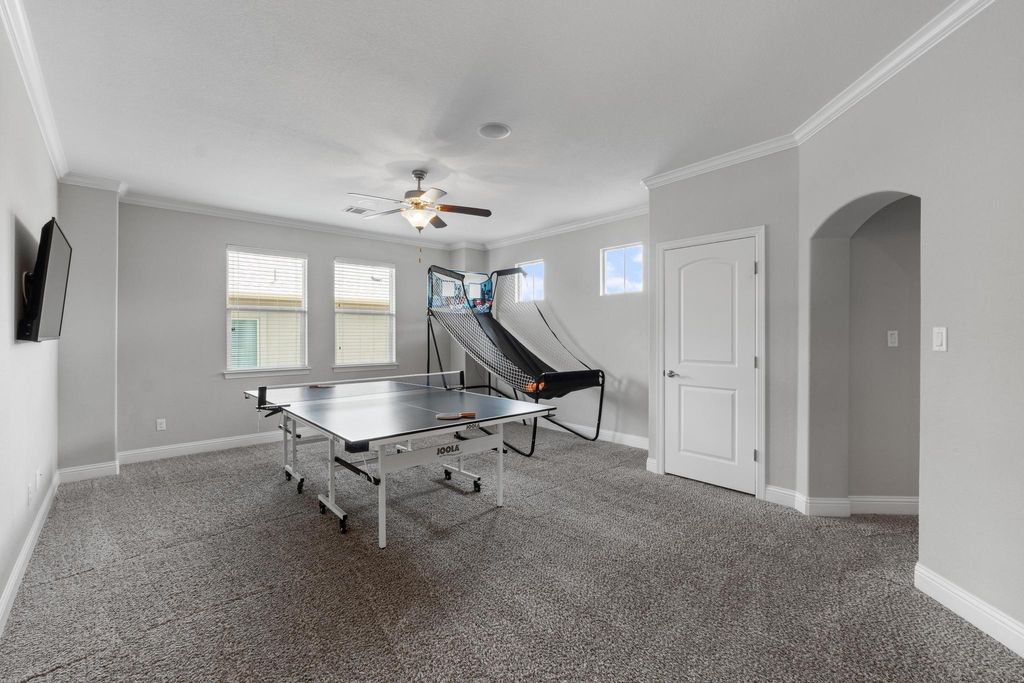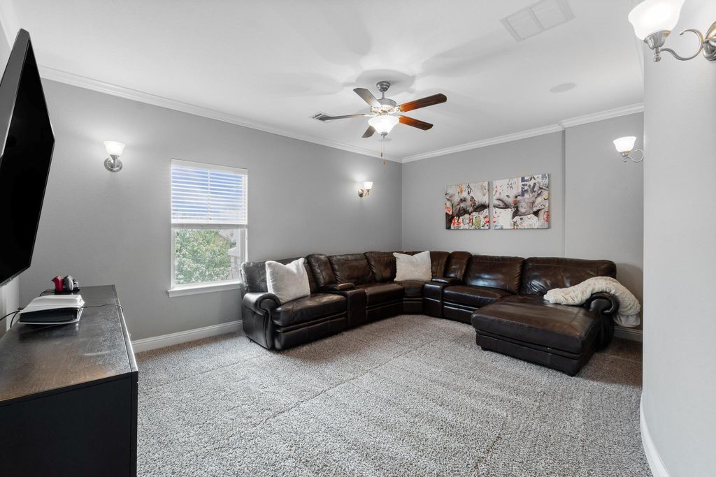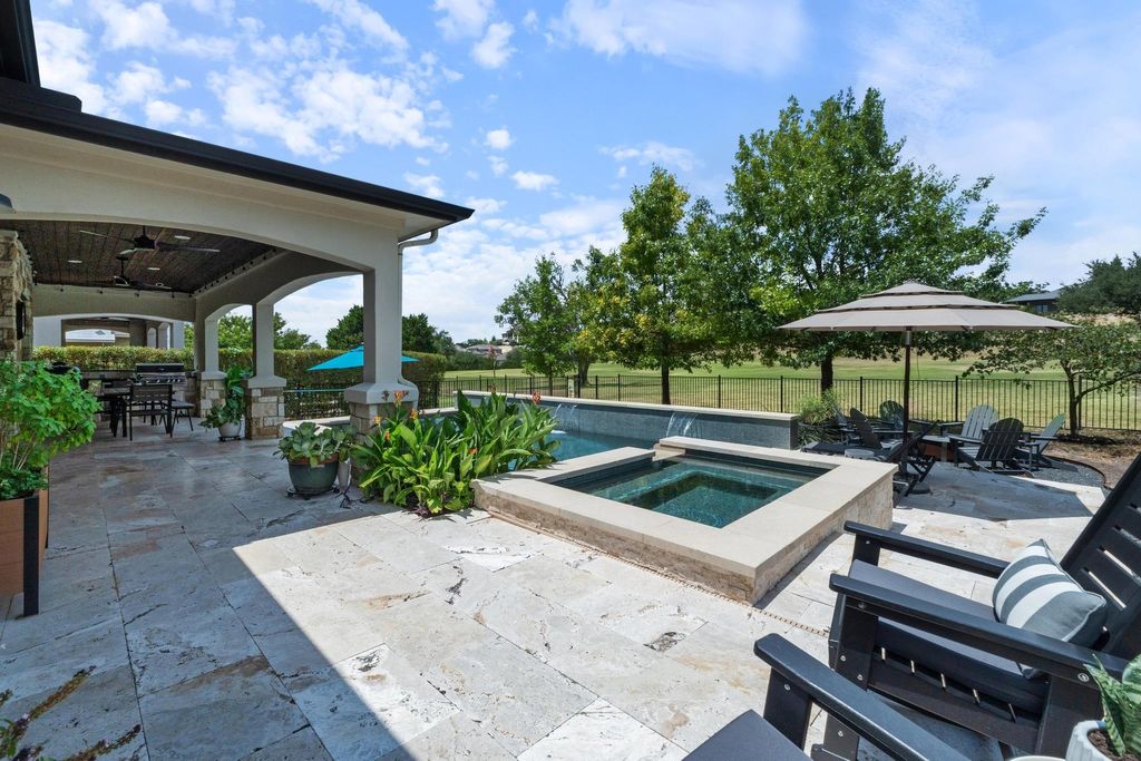 Step into elegance in this exquisite 5-bedroom, 3.5-bath estate home within the prestigious gated community of Cap Rock at Crystal Falls. Spanning 3,959 square feet, this residence offers an idyllic lifestyle alongside the 5th hole of the Crystal Falls golf course. Your outdoor oasis awaits with a stunning pool & spa framed by beautiful Italian Leuder stone, complemented by an expansive patio"”ideal for entertaining or soaking up the sun. Also included is a grill and fridge. Inside, experience modern amenities & timeless design. A surround sound system enhances the atmosphere throughout the living room, game room, media room & primary bathroom. Recent upgrades include a new roof (2025), fresh exterior paint (2024), and updated interior paint. The first floor features oversized wood tile flooring, with custom blinds & shutters adding sophistication. The gourmet kitchen boasts abundant cabinetry, making culinary creations a joy. The elegant half bath features a charming double farmhouse sink for guests. The primary suite is a tranquil retreat, complete with custom double doors leading to a private patio and hot tub"”perfect for relaxation. The upgraded quartz master bathroom & custom closet crafted with genuine hardwoods, enhance the luxurious feel. Spacious secondary bedrooms reflect the luxury of master suites, each with oversized closets. Gather around the striking 20-foot stone fireplace in the living room, adorned with custom drapes. Crown molding throughout adds refinement, while upgraded mirrors elevate all bathrooms. Enjoy evenings by the fire pit in your meticulously landscaped yard, designed for privacy with full iron fencing. The finished 3-car garage is a car enthusiast's dream, featuring epoxy floors, built-in cabinets, and ample storage. This exceptional home also comes with a water softener & kitchen refrigerator. Don't miss the chance to call this magnificent estate your own!