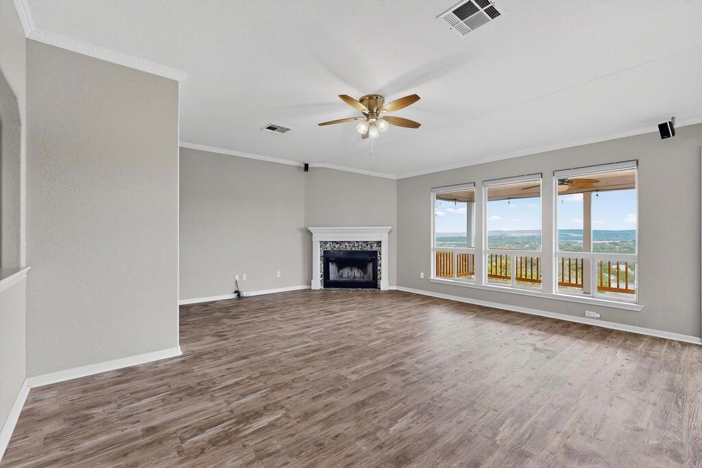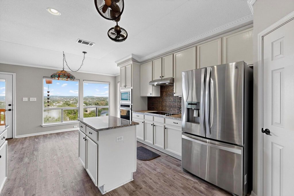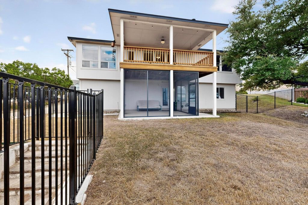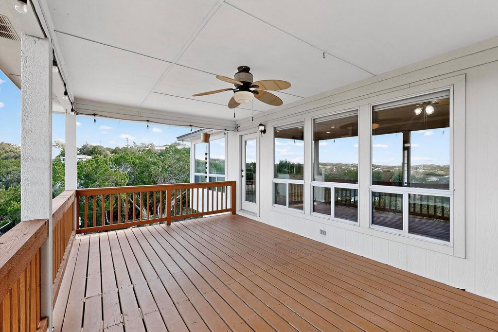 Tucked away at 21200 High DR, LagoVista, TX 78645, this single-family residence in LagoVista, Texas, is practically winking at you - because it knows it's in great condition and ready for a lucky new owner! Imagine whipping up culinary masterpieces in a kitchen that's not just functional, but fabulous: think stone countertops that gleam, shaker cabinets showing off their crown molding, and a large kitchen island just begging for you to gather around it. The backsplash adds a touch of pizzazz, while the stovetop and kitchen peninsula stand ready for your every culinary adventure. Meanwhile, the living room whispers promises of cozy evenings spent basking in the glow of the fireplace, also showing off crown molding. The bedroom is not just a place to sleep, it's a sanctuary complete with its own ensuite bathroom - talk about convenience! The bathroom itself is a spa-like retreat, featuring both a tiled walk in shower and a tile tub for ultimate relaxation, plus a double vanity so you don't have to fight for mirror space. But wait, there's more! Picture yourself lounging on the balcony, or hosting epic backyard barbecues in the fenced backyard, complete with a patio and deck. And if you need to cool off, the community pool or lake is just a hop, skip, and a jump away! This open floor plan home also features a sunroom - perfect for soaking up some rays, no matter the weather. With 2 and a half garage spaces, a residential area location, and built in 1999, this property is a treasure trove of delightful features just waiting to be discovered.