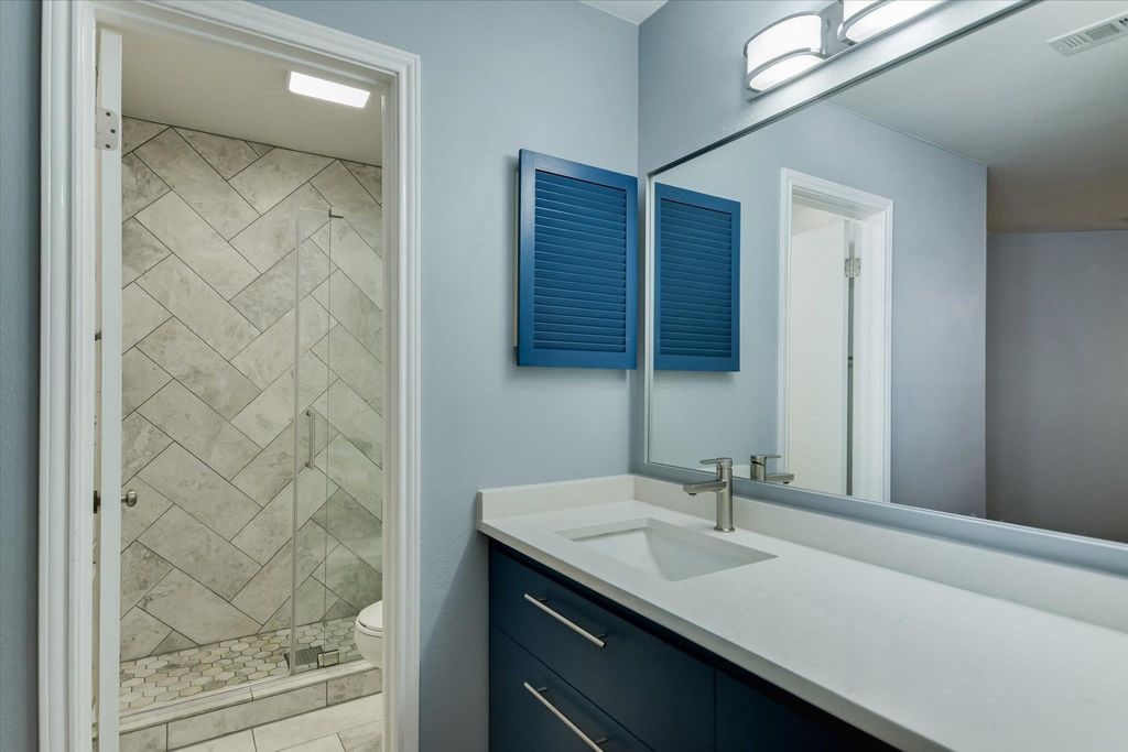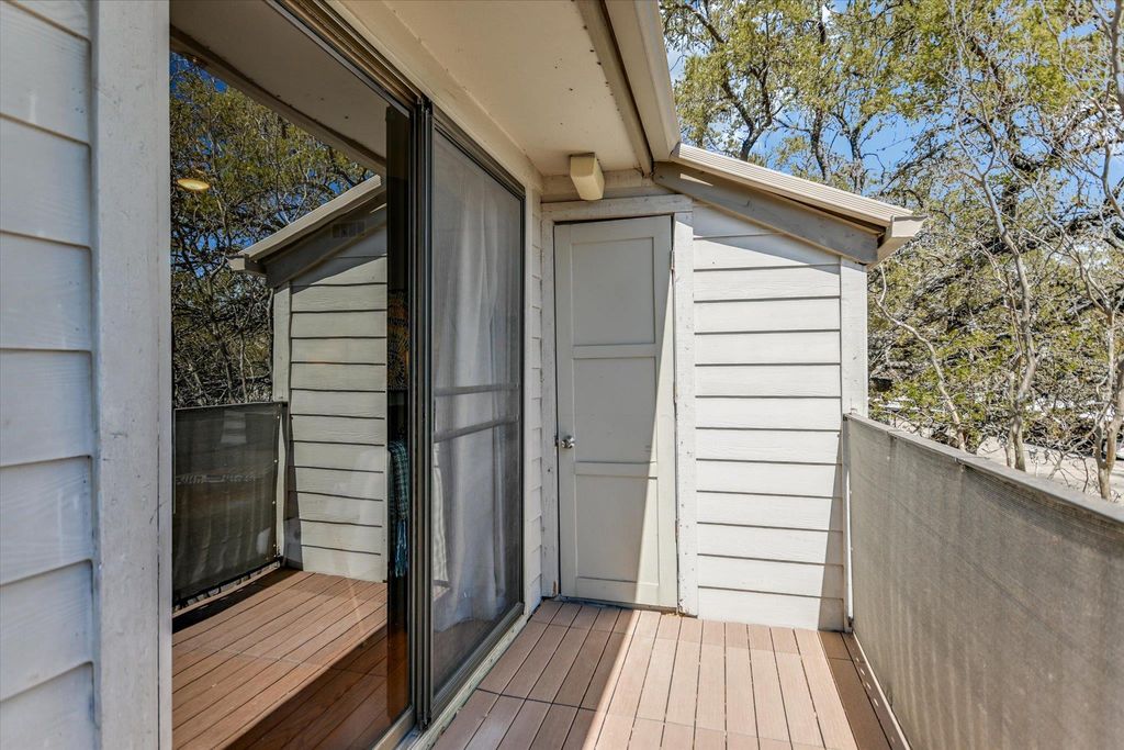 Welcome to this exceptional 2-bedroom, 2-bathroom condo, thoughtfully renovated to offer modern comfort and style. Featuring beautiful engineered hardwood floors throughout with no carpet, this home exudes warmth and sophistication. The updated kitchen includes sleek white soft-close cabinets, under-cabinet lighting, granite countertops, and elegant tilework. The spacious living area features a striking fireplace with custom tiling and floating shelves, along with access to a private balcony "” perfect for relaxing or entertaining. Both bathrooms have been tastefully renovated with contemporary finishes, including a custom vanity and shelving in the primary suite. Recent upgrades include a brand-new air conditioner and heater, as well as a GE washer/dryer combo. Tucked away at the rear of the complex, this second-floor unit offers extra natural light, added privacy, and a quiet atmosphere. A dedicated covered parking spot and additional guest parking provide convenience. Located just minutes from The Domain, major freeways, shopping, and restaurants, this condo is in a prime location.