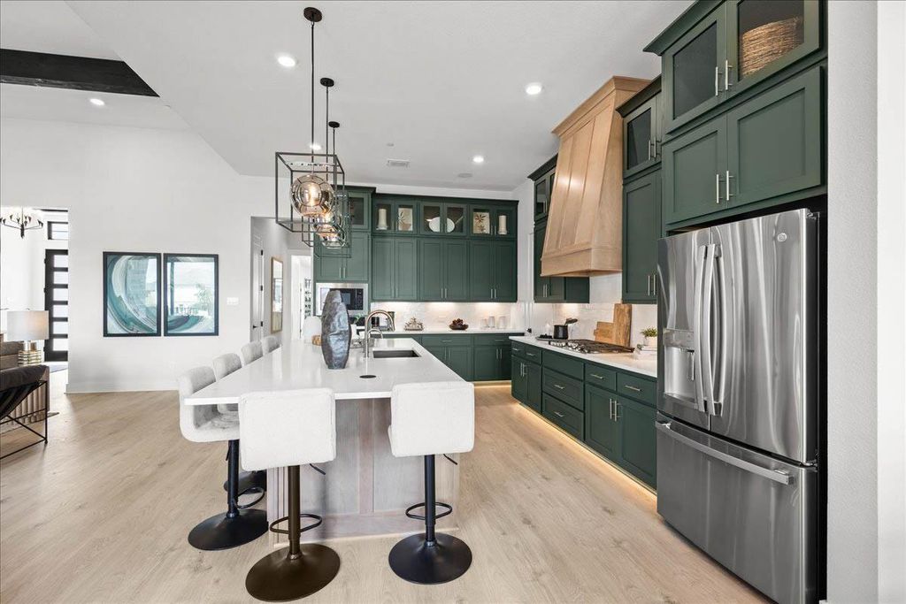 MOVE IN READY in Sweetwater and full of charm!! This impressive two-story home offers over 3,300 square feet of beautifully designed living space plus a spacious 3-car garage! With 4 bedrooms, 3.5 baths, a dedicated study option, game room, and versatile flex room, there's room for everyone to live, work, and play. The open-concept living area features soaring ceilings accented with beams, creating a warm and inviting atmosphere that flows seamlessly onto the large, covered patio perfect for hosting friends and family. The kitchen is a chef's dream with abundant cabinetry, a generous island, and a cozy dining nook ideal for everyday meals. Upstairs, kids and teens will love having their own retreat with both a game room and flex room for endless entertainment possibilities. This home blends thoughtful functionality with stunning design. New photos come soon. Some are REPRESENTATIVE of the floorplan.