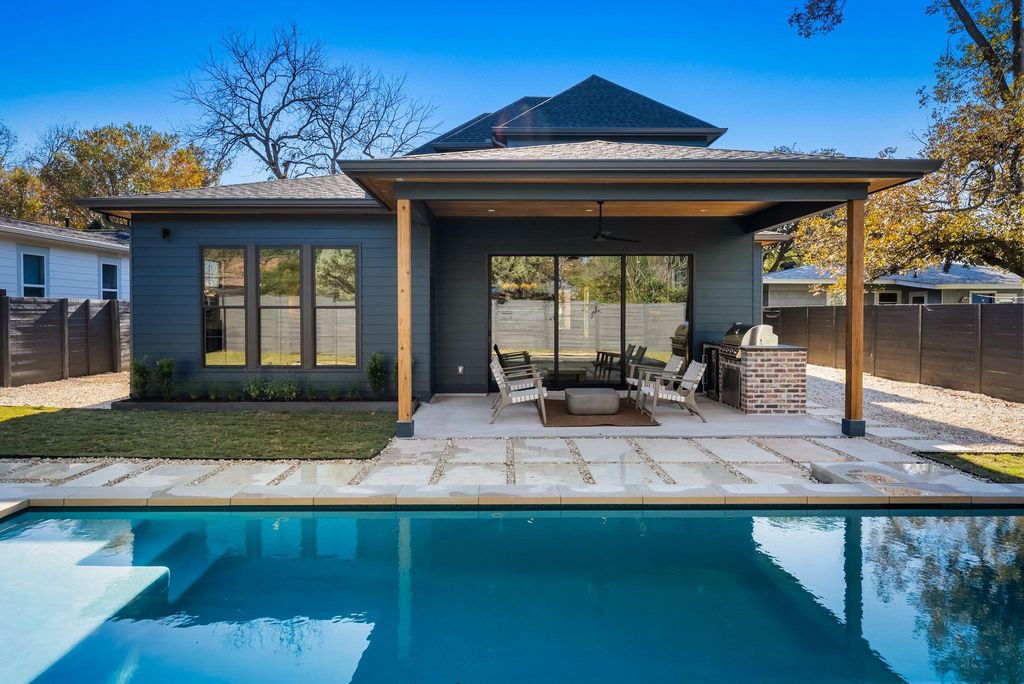 Welcome to the Alegria Residence "” a newly completed luxury home in Brentwood featuring high-end design by award-winning Juneberry Homes. With 2 main-level bedrooms, a sparkling pool, dual living rooms, and a two-car EV-ready garage, this nearly 2,900 sq ft residence blends superior craftsmanship with warm modern style. Inside, soaring ceilings and elevated finishes"”including European white oak floors and premium tile selections"”create a refined yet inviting atmosphere. The gourmet kitchen is equipped with JennAir appliances, Maldives granite countertops, walnut cabinetry, a spacious walk-in pantry, and a dedicated dining area with a full wet bar. The main-level primary suite offers a spa-inspired bath with a walk-in shower, separate soaking tub, and an oversized walk-in closet. A secondary bedroom, a full bathroom with direct pool access, a dedicated laundry room with sink, and a drop zone with built-in bench and cubbies complete the first floor. Upstairs, a second living room provides flexible space for a playroom, media room, or office. A third bedroom features a private ensuite bath, while two additional bedrooms share a Jack-and-Jill bathroom"”each with their own walk-in closet. Additional upgrades include custom wainscoting, built-in shelving, a tray ceiling in the living room, under-cabinet lighting, a custom wooden garage door, surround-sound wiring, and epoxy flooring in the garage. Designed for true indoor-outdoor living, large sliders open to a covered deck with an outdoor kitchen featuring a built-in grill and beverage fridge. The sparkling pool creates a private retreat perfect for relaxing, entertaining, and summer gatherings. The home is zoned to highly rated Brentwood Elementary, Lamar Middle, and McCallum High School. Enjoy walkability to Brentwood Park, Brentwood Social House, Bird Bird Biscuit, and local neighborhood favorites, with quick access to 183, I-35, Downtown, and The Domain.