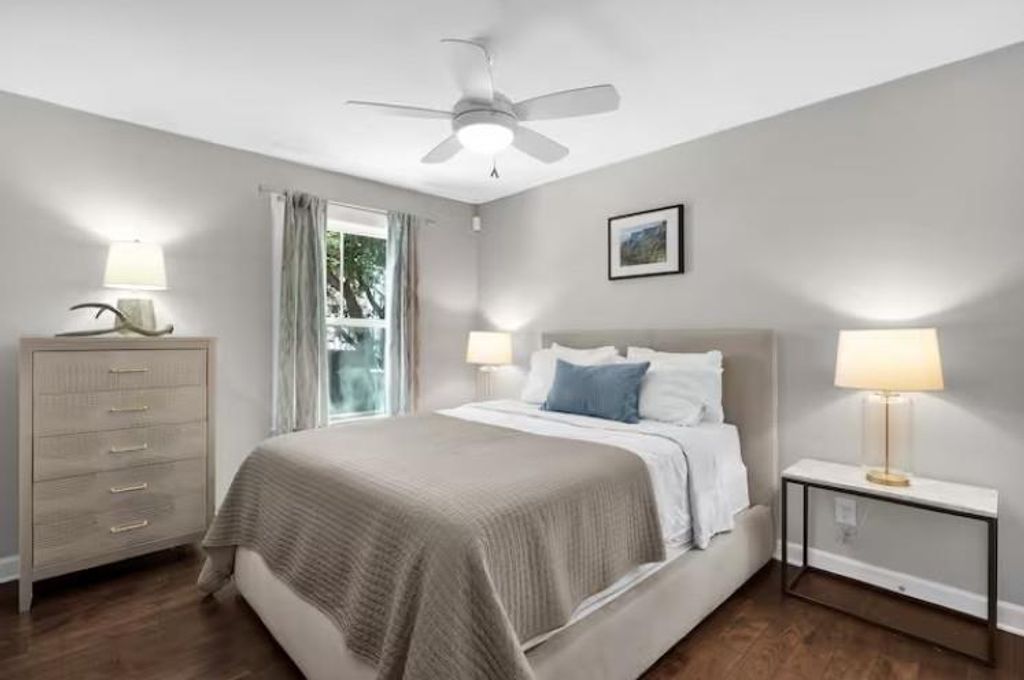 Reintroduced at a New Price, this Clarksville residence with a private income-producing ADU now stands as one of the best values in Old West Austin. Thoughtfully rebuilt in 2015 after a full down-to-the-studs renovation, the home blends timeless charm with modern comfort in a location that's both walkable and serene. The main home overlooks a quiet neighborhood park and offers 2 bedrooms, 2 bathrooms, a cozy office nook, and a bright open-concept living, dining, and kitchen area designed for both everyday living and effortless entertaining. Elegant finishes include solid hardwood floors (excluding baths), Carrara marble countertops and tub surrounds, and classic white 2" hex tile in the bathrooms. The kitchen is outfitted with Jenn-Air appliances, Silestone counters, and a striking Carrara marble backsplash. Tucked behind the main home, a spacious air-conditioned garage currently functions as a home gym. Above it sits a 1-bedroom, 1-bath apartment complete with a full kitchen and private entrance"”perfect for guests, a home office, or steady rental income. Just minutes from Lady Bird Lake, Zilker Park, and Clarksville's favorite restaurants and shops, this home offers the ideal mix of neighborhood charm, investment opportunity, and central Austin convenience"”all at a newly improved price.