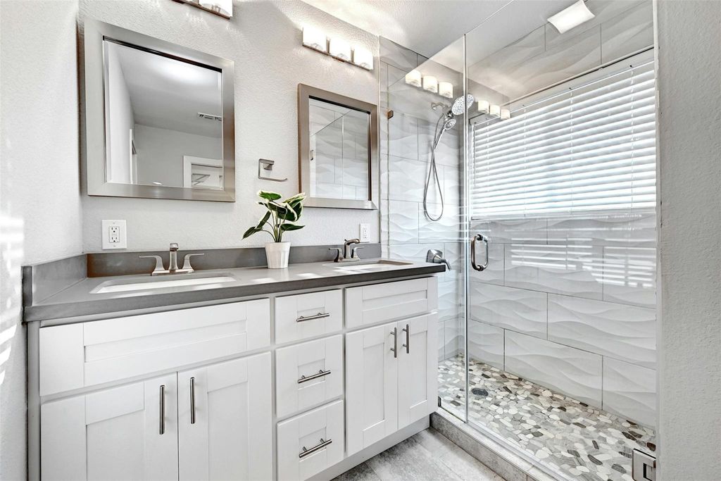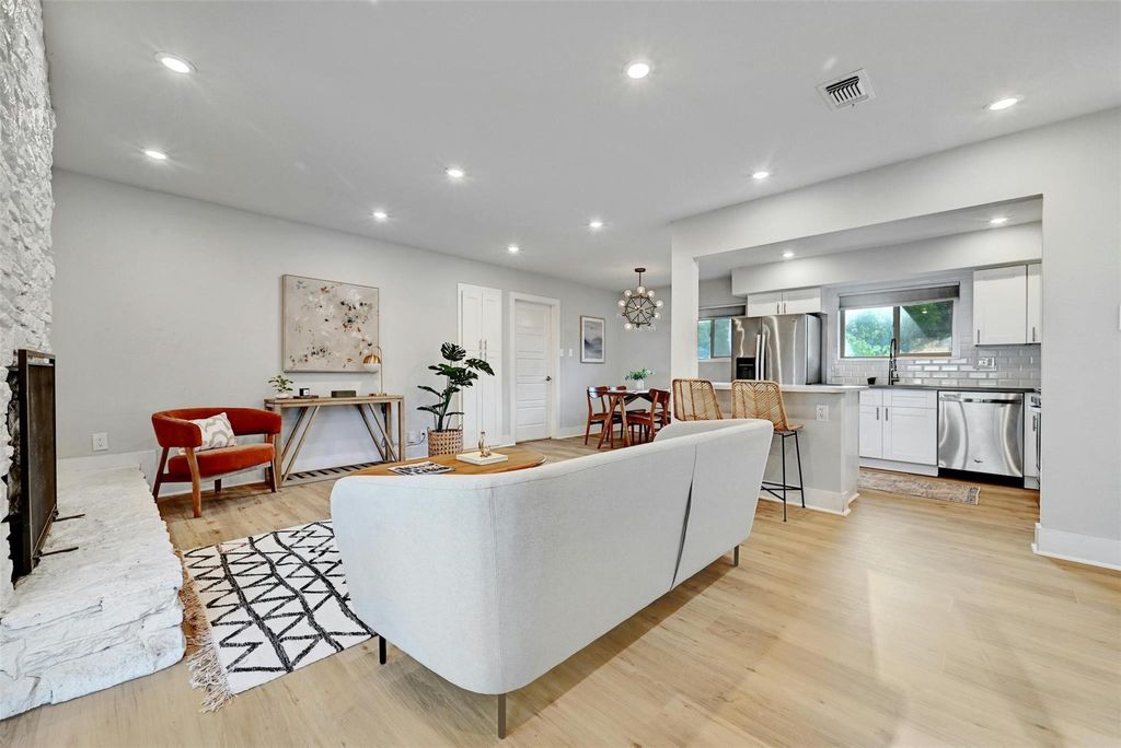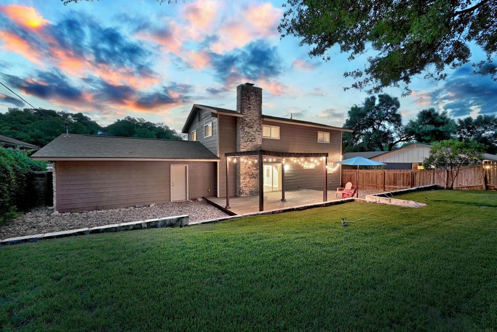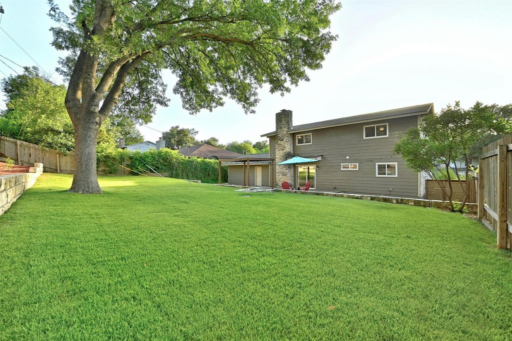 Welcome to a University Hills modern with a HUGE backyard. Completely updated home with a massive private backyard, a 600-square-foot deck, and a pergola. 4 bedroom, 3 bath home + office! Private office /flex room right when you walk in. Inside this, the open floor plan seamlessly connects the living space with the modern kitchen complete with Silestone countertops and new luxury vinyl plank flooring. Tons of natural light that opens to backyard oasis. The Pergola covered deck is great for entertaining and outdoor eating. 3 bedrooms are up, and one bedroom is down. Fully updated Spa-like primary bath with frameless shower door and two sinks. There is also a full bedroom/bath on the first floor makes this home perfect for entertaining guests. Mud room/laundry and two-car garage give you plenty of storage. The house is close to everywhere you want to be! Minutes from downtown. 2 miles from Mueller dining and entertainment. Starbucks is right down the street, as well as Morris Williams Golf Course, and Little Walnut Creek Greenbelt. List of upgrades in attachments!