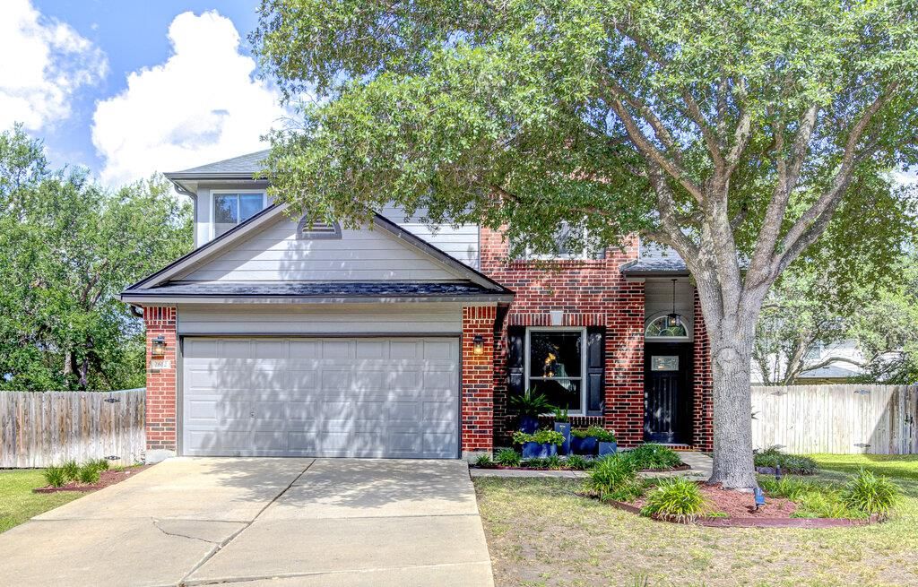 Bauerle Ranch Beauty | 3 Bed + Loft | Dream Kitchen & Backyard Oasis Tucked on a low-traffic lane in sought-after Bauerle Ranch, this charming red-brick home overlooks a shady pocket park! Inside, you'll love the fully remodeled kitchen with quartz counters, custom cabinets, SS appliances, and a walk-in pantry/laundry room. The open layout features bamboo floors, a cozy family room, formal dining, and an updated powder bath. Upstairs: spacious loft, two secondary bedrooms, updated bath, and a serene primary suite with soaking tub, walk-in shower & closet. Step outside to your private retreat"”extended patio, deck, lush landscaping, and shade trees. Plus, community pool, trails, playground & LOW tax rate!