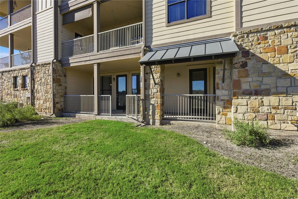 Don't miss this incredible opportunity to own a first-floor condo in the highly desirable community of The Hollows on Lake Travis. This 2-bedroom, 2-bath unit offers an inviting layout with a spacious living room, dining area, and a galley style kitchen. The gated, covered patio is perfect for entertaining with access to common area. Plus, a large garage provides ample storage and convenience for Car and Golf Cart. Nestled in a Resort-Style Community, The Hollows has 1,500 acres of beautiful Texas Hill Country surrounded by Lake Travis. Just up the hill to the highest point of the resort, is the Hilltop Smokehouse. This is a great place for family gatherings, a large fire pit, grill, smoker, restrooms, and is a wonderful place to watch the sunset. The Beach Club includes a Grill/Bar, infinity pool, children's pool, spa pools/hot tub, large smokehouse, pickle ball court, hammocks, grills, and access to the lake. Stay active with a scenic hiking trails throughout the resort. A fully equipped fitness center, sand volleyball court or unwind at the Smokehouse Pavilion, featuring a covered grill, kitchen, and cozy fireplace. Enjoy dining at the on-site restaurant while taking in stunning Hill Country views. The Trailhead Club is an additional amenity provided that includes a pool and pickle ball courts. The full-service Hollows Marina has slips for overnight rental, a fuel dock, and a ships store for your convenience. Experience the perfect blend of lake living and luxury amenities, all just moments from your doorstep! Don't miss your chance to live the Lake Travis dream! Live Like Your On Vacation!