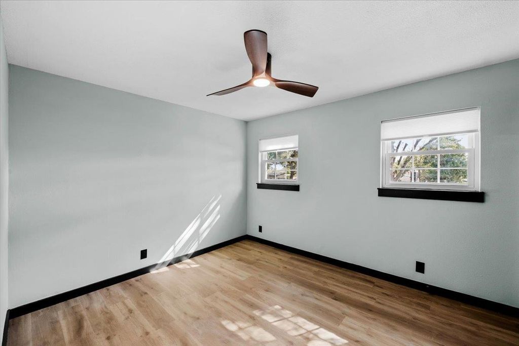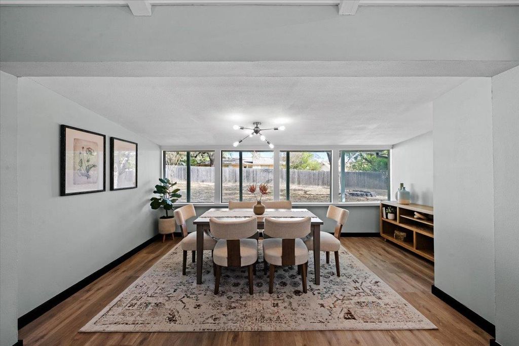 This fully remodeled single-story home sits on a spacious 0.34-acre lot surrounded by mature trees in Oak Hill. Featuring 4 bedrooms, 2 bathrooms, and 3 living areas, this home blends modern updates with the comfort of an established neighborhood. Inside, the family room and kitchen flow seamlessly into each other under a cathedral ceiling with a skylight, creating an open and inviting space filled with natural light. Luxury vinyl plank flooring extends throughout, paired with solid-core doors, updated trim, new lighting, and fresh paint inside and out. The kitchen has been completely redesigned with new cabinetry, quartz countertops, modern hardware, a walk-in pantry with built-in storage, and all-new appliances. The dining room, located across from the kitchen, features picture windows overlooking the backyard. The primary suite offers a walk-in closet, dual vanities, and a walk-in shower. Both bathrooms have been fully updated with new vanities, tile, fixtures, mirrors, and exhaust fans for a cohesive, modern design. System updates include a reconditioned HVAC system, new 50-gallon water heater, updated electrical panel, and added attic insulation. Outside, the backyard offers a covered patio that extends to an open deck shaded by mature trees. Additional exterior updates include refreshed concrete and driveway stain, new gutters, lighting, landscaping, and a drip irrigation system. A durable metal roof provides long-lasting protection. Conveniently located near shopping, dining, and parks with easy access to 71 and 290, this move-in ready home offers a rare opportunity to enjoy a fully modernized residence in a well-established Austin neighborhood.
