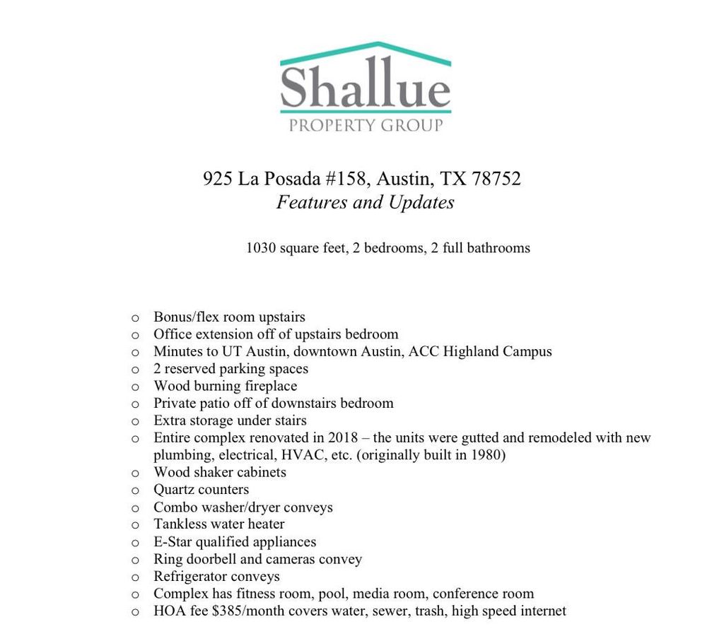Prime city retreat with a gym, pool & media room, low cost per square foot, and quick commutes! Just minutes from UT, downtown, Mueller, the Domain, the ACC-Highland campus, and just 20 minutes to the airport. Wood shaker cabinets, recessed lighting, quartz counters, smart thermostat, patio seating, and cozy wood-burning fireplace. The entire complex was beautifully renovated in 2018. This unit was fully gutted and remodeled - plumbing, electrical, HVAC, etc. Primary bedroom downstairs has a patio and a huge walk-in closet. Upstairs is the second bedroom + bonus room. It comes with two reserved parking spots - both #43!