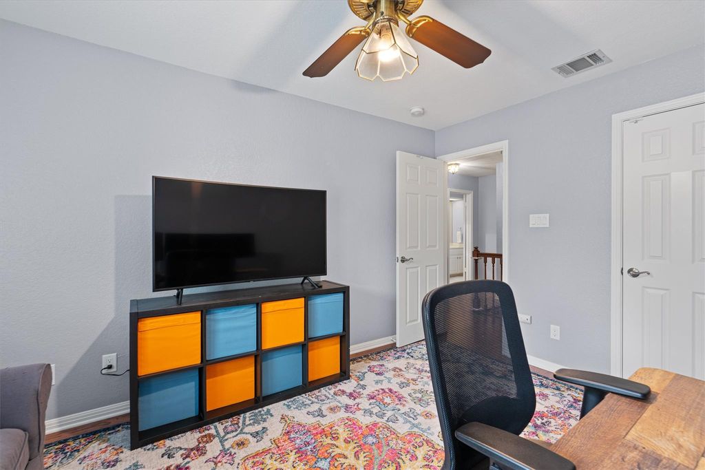 Beautifully updated home nestled on a spacious .297-acre lot in the highly sought-after Austin Hills neighborhood just a block from the Great Hills Trailhead. With its stunning brick exterior and mature trees gracing the front yard, this property offers exceptional curb appeal. Step inside to an elegant, well-maintained interior featuring gorgeous hardwood flooring, crown molding, plantation shutters, updated lighting, and neutral paint throughout. The home boasts a spacious home office and a formal dining room, perfect for hosting gatherings. The inviting living room is centered around a charming wood-burning fireplace, creating a cozy atmosphere for family and friends. The open-concept kitchen is a chef's dream, with a large island, breakfast bar, granite countertops, ample storage, and high-quality appliances"”ideal for preparing meals and entertaining guests. The main-floor primary suite offers a private retreat with direct access to the back patio, a large walk-in closet, and a luxurious en-suite bathroom. The bathroom features separate granite-topped vanities, a walk-in shower, and a soaking tub for ultimate relaxation. The expansive, fenced backyard is a true highlight, offering plenty of room to enjoy the outdoors. A covered patio provides a perfect spot for al fresco dining, and the mature trees offer ample shade for warm days. Located in an excellent neighborhood, this home provides the perfect balance of tranquility and convenience, just minutes from shopping, dining, and top-rated schools. Roof is just 1 year old! Check out this home today!