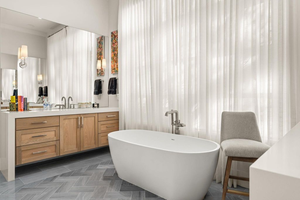 Located in the highly sought-after Tarrytown neighborhood, this exceptional 2022-built residence by Nalle Custom Homes offers a rare blend of luxury, convenience, and sophistication, further enhanced by extensive seller upgrades. Lightly lived in and meticulously maintained, the home is essentially like new and move-in ready. Grand iron doors open to a striking entry, setting the tone for the elevated design throughout. The dining room features custom wallpaper and a glass-shelved bar, flowing seamlessly into the open-concept living area with a dramatic fireplace and wall of windows that flood the space with natural light. The gourmet kitchen boasts high-end appliances, custom cabinetry, and a built-in refrigerator/freezer, complemented by a well-appointed pantry and butler's pantry with beverage fridge and flexible functionality. Exceptional storage is thoughtfully integrated throughout the home. The main level includes a serene primary suite with spa-like finishes and a fifth bedroom with ensuite bath, ideal for guests or a home office. Upstairs, three spacious ensuite bedrooms and an oversized game room"”designed as a fully immersive home theater"”provide comfort and versatility. Dual laundry areas add everyday convenience. The backyard is an entertainer's dream, featuring a pool and spa with heater and chiller, turfed lawn, automated screened porch with outdoor kitchen, and custom TUUCI umbrella. Additional highlights include a whole-home generator, Control4 AV system, privacy landscaping, and whole-home water filtration. Ideally located within walking distance to Tarrytown Park, Casis Elementary, and local favorites, this home delivers luxury living in one of Austin's most desirable neighborhoods.