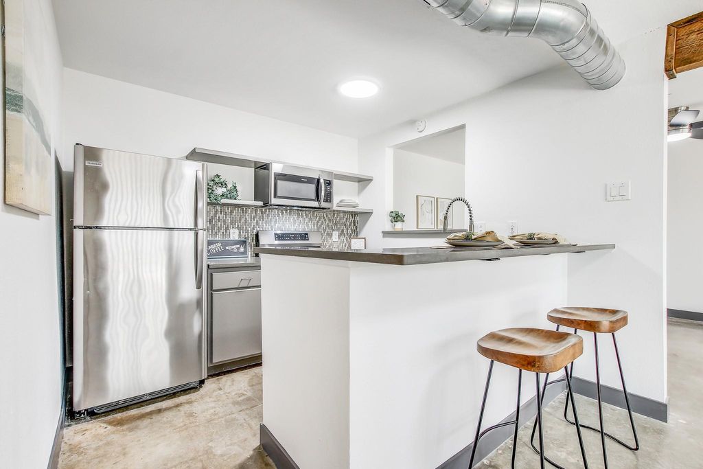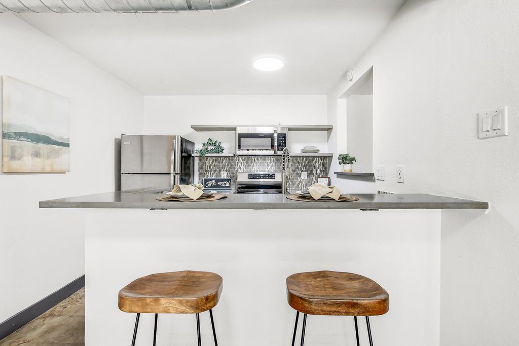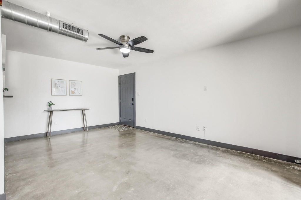 Nestled in the heart of Austin, near downtown with easy access to I-35 and CapMetro and UT bus transit, this property located in a gated community. has been recently updated and presents a fantastic opportunity to embrace the Austin lifestyle. The unit is situated on the main level and has polished concrete floors throughout for easy maintenance and durability. The living room offers a comfortably-sized space for a single occupant or multiple roommates. The beamed ceiling and exposed ductwork in the common areas create a more contemporary feel and add architectural interest. The kitchen features a tiled backsplash, breakfast bar, and a kitchen peninsula, offering both style and functionality for the home chef. Both bedrooms are plenty spacious and have ample closet space. The secondary bedroom could function either as a bedroom or an office/study . The primary bedroom is complete with an ensuite bathroom with double sinks and a custom tiled walk-in shower. With two bathrooms and two bedrooms, this 1973-built condominium is a perfect blend of comfort and convenience. The condo association is currently updating the exterior of the property, including siding, paint, roofing, decking and fencing. Please excuse the mess while renovations are in process - the finished product will be gorgeous and will surely add value to the complex as a whole! Cool off this summer in the sparkling community pool-what a great way to relax and enjoy some free time while beating the heat!