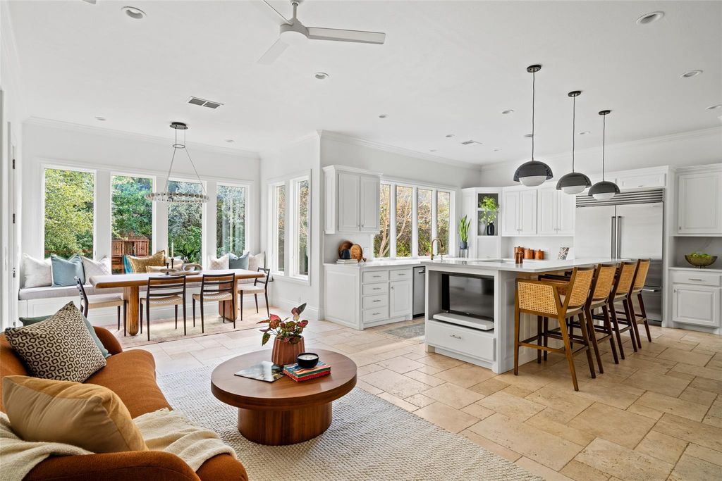 Set on a private half-acre in the gated Davenport West community, this beautifully detailed 4-bedroom home offers timeless design and modern comfort in the heart of Westlake. The open, light-filled layout features high ceilings, crown molding, and a living room with fireplace and French doors opening to the backyard. The kitchen includes quartz counters, a center island, Sub-Zero refrigerator, Dacor cooktop, and breakfast bar, all open to the family and dining areas. The main-level primary suite includes a walk-in closet, dual vanities, and glass shower, plus an adjacent office or flex room. Upstairs are two additional bedrooms and a game room. Enjoy peaceful outdoor living with a covered patio, mature trees, and a greenbelt backdrop. Zoned to Eanes ISD and minutes from Lake Austin and Davenport Village.