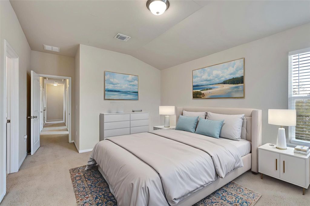 This spacious 4-bedroom, 3.5-bathroom, two-story home offers comfortable living inside and out. The property features a covered front patio, two fenced side yards (one with a covered patio), and a two-car garage with extended driveway. Inside, the first floor includes a living room with under-stair storage, dining area, kitchen with refrigerator included, half bath, and laundry room with washer and dryer included. Upstairs, you'll find the primary suite with private bath plus three additional bedrooms and two full bathrooms. Located in a vibrant community with access to a swimming pool, park, basketball court, and pet-friendly amenities. Just minutes from local shopping and dining, including Mueller Market District, Tech Ridge Center, and a variety of nearby restaurants and cafés, with convenient access to major roadways for easy commuting.