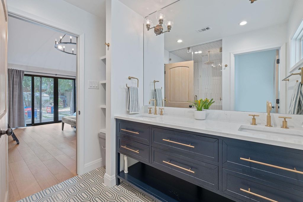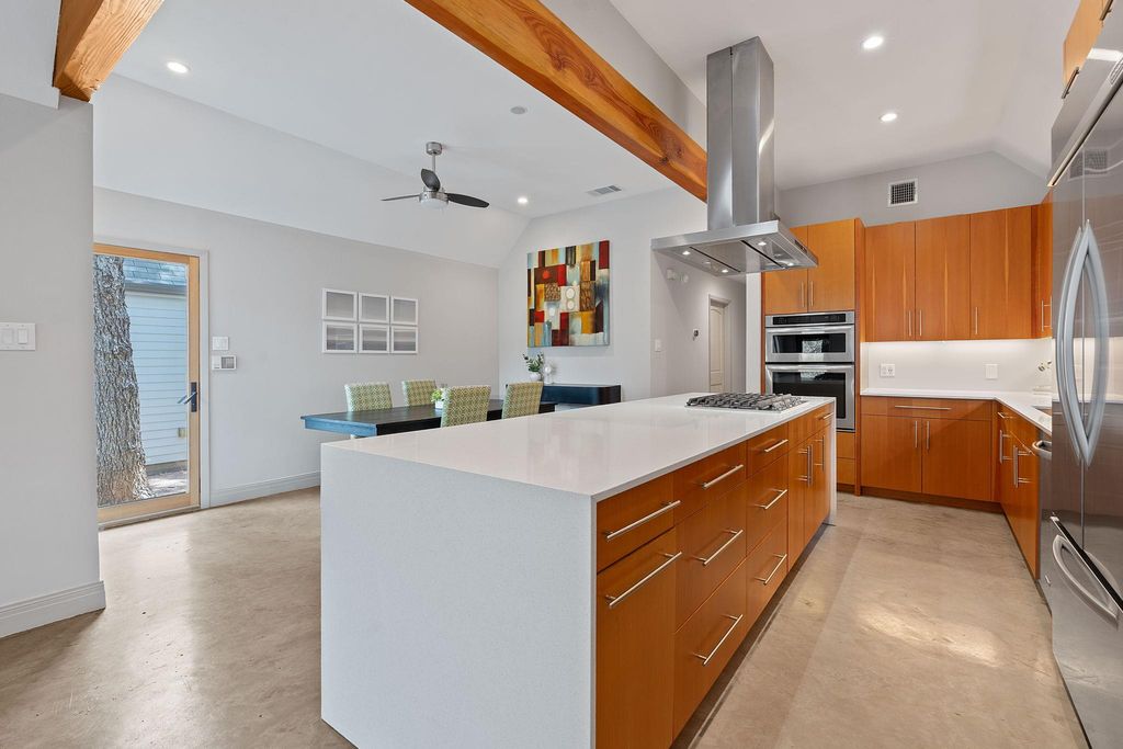 This modern oasis is located on a corner lot in the sought after Zilker neighborhood just off of South Lamar and within walking distance to Alamo Drafthouse, Medici, Uchi, Odd Duck, Barton Springs Rd and so much more. The main house features concrete flooring, vaulted ceilings, modern kitchen with waterfall quartz counters, custom cabinetry all in an open floor plan. The guest bathroom features a dual vanity and seamless glass shower. In the primary bedroom you will find vaulted ceilings, a 150+ sq ft loft space, walk in closet and the primary ensuite features a beautiful shower with custom marble seat and dual vanity. Sliding glass doors lead from your primary bedroom out to your turfed back yard which is an entertainers dream. Enjoy an outdoor kitchen with marble countertop, firepit, and tons of space for enteratining and enjoying the outdoors. Across the breezway from the main house is the guest house/ADU which features a full bathroom, laundry room which leads to the back yard with a washer/dryer connection as well. Upstairs you have a kithenette with a fridge and microwave, making it the perfect guest house, office, gym or short term rental. An amazing opportunity on a corner lot in one of Austin's most sought after neighborhoods, just minutes to downtown Austin.