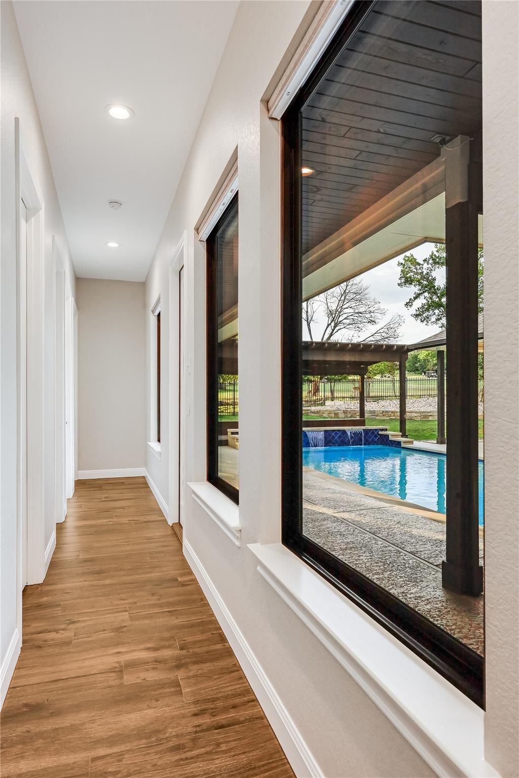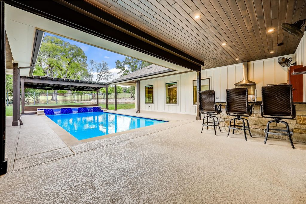 This custom-built 2018 residence blends modern comfort with the relaxed charm of lake life. Designed with a U-shaped layout, the home centers around a stunning private pool with waterfalls and a pergola covered dining space, your own backyard retreat. The views are peaceful backing to the well groomed golf course. Inside, you'll find 3 spacious bedrooms and 2 bathrooms, including a primary suite with two separate walk-in closets, a walk-in shower, and a soaking tub. The open living areas flow seamlessly outdoors to a large cooled porch, complete with privacy shades, perfect for relaxing evenings watching TV. The full outdoor kitchen makes entertaining effortless. Additional highlights include a 3-car garage plus dedicated RV parking with power supply, ensuring space for all your vehicles, toys, and guests. Living in Point Venture means more than just a home it's a lifestyle. Enjoy direct access to a vibrant community with a 9-hole golf course, tennis and pickleball courts, a waterfront park with boat ramp, community pool, workout facility, and even a floating restaurant on Lake Travis.