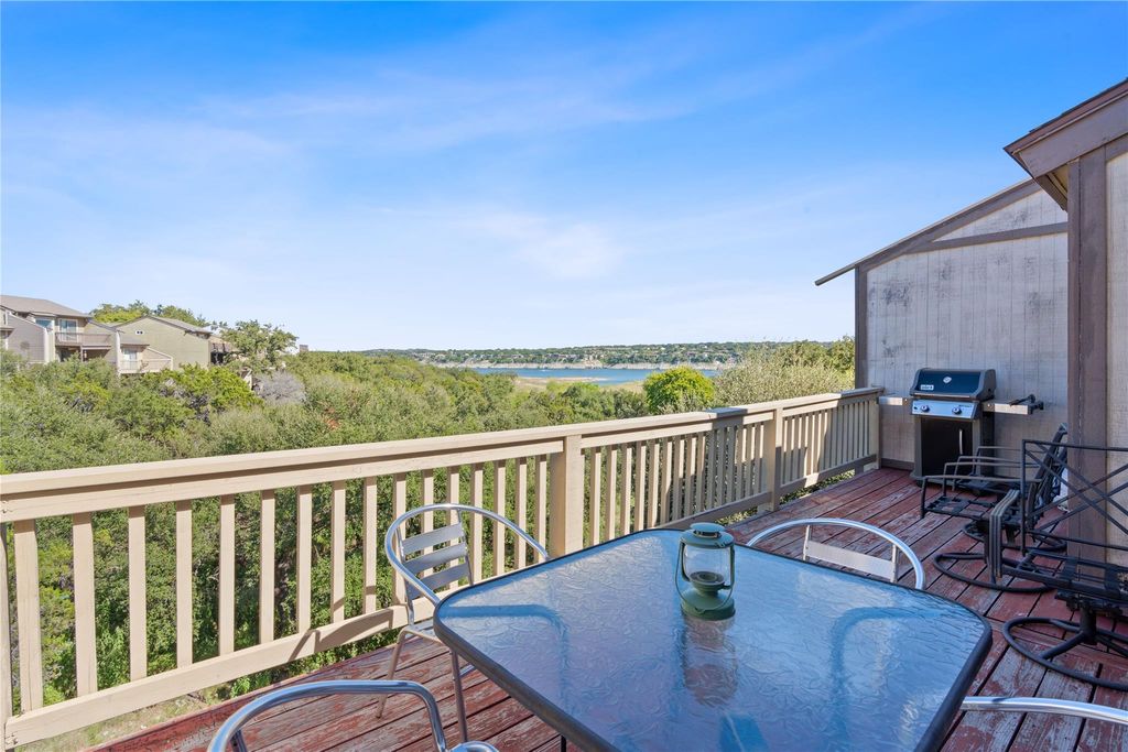 Enjoy the tranquil lifestyle of Lake Travis living at this beautiful townhome in Point Venture. This recently updated townhome features 3 bedrooms, bonus room, and 2 full bathrooms situated on 2 levels, each with its own outside deck facing a gorgeous Lake Travis and Hill Country views! The home can come fully-furnished with beautiful and modern decor! The living area has soaring ceilings and the updated white kitchen is perfect for whipping up anything! The main floor owner's suite is a relaxing retreat after a day of boating, fishing and swimming. Head down the stairs to the secondary bedrooms, one with a patio that is ideally positioned to take in the balmy tranquility of the lake and provides plenty of space for lounging, dining and enjoying great conversations with friends. Walk to the tennis courts and swimming pool or get a quick round in with the Point Venture golf course right down the street. Enjoy sunsets at the private waterfront park, complete with a boat dock, disc golf, and playground! The ideal lifestyle awaits you; don't miss your opportunity to own this incredible townhome for full or part time lake living or investment as a current working Airbnb!