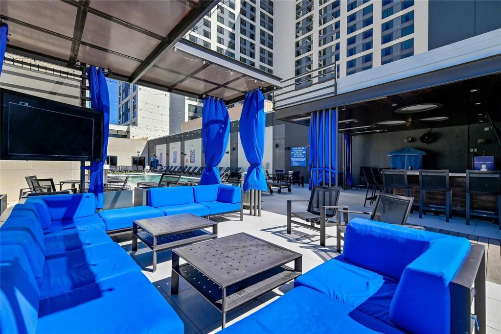 Amazing, one bedroom unit at the 5 Fifty Five Residences, a premier condo attached to the Hilton. True to the brand, the amenities are top-notch where you can enjoy exclusive access to the Hilton Pool, Spa and Fitness Center. The rooftop, saltwater pool has plenty of place to lounge plus there is a jacuzzi, sauna, full bar and food service. Residents can take advantage of the 24-hour concierge service as well as a wonderful array of luxury services provided for your convenience. This spacious condo features an open floorplan with high ceilings and abundant natural light thanks to the floor-to-ceiling windows. Large balcony with an east-facing view that offers wonderful sunrises and overlooks both vibrant East Austin & all the way to the more natural greenspace just beyond. The beautiful oak hardwood floors offer a touch of elegance and blend nicely with the granite counters and natural woodwork in the kitchen. Outfitted with a gas Wolf range, Bosch diswasher, built-in mircowave and warming drawer, you'll enjoy cooking or entertaining here. The large bedroom has a walk-in closet, black-out shades and full bathroom with ample space and storage. This controlled access building has a gated, attached parking garage with one designated space for this unit. You won't be disappointed with the included services such as package delivery, common-area cleaning & maintenance, an HVAC filter replacement program, 24-hour coffee and espresso station, daily newspaper delivery and complimentary lobby Wi-Fi. Also included as part the rent is the domestic water, gas, trash and recycling as well as a refrigerator, washer & dryer. Come live in the heart of one of the Nation's most happening Cities, where you are steps away from acclaimed, 5-star restaurants, live music & entertainment or enjoy of the best nightlife around including 6th Street, Rainey Street or East Austin, whatever suits your mood that day!