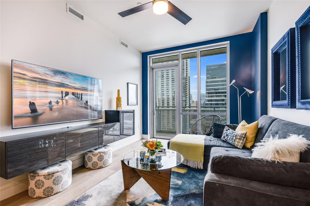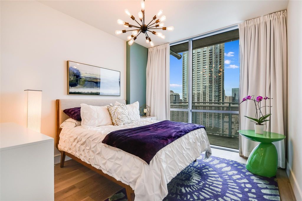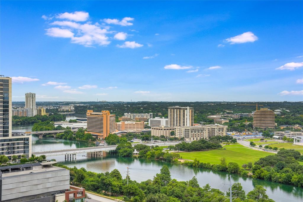 Experience urban living at its finest in this stunning 1-bedroom, 1-bathroom condo on the 22nd floor of the highly sought-after Seaholm Residences. Enjoy panoramic views of downtown Austin and Lady Bird Lake from your private retreat. This unit features wood flooring, an open-concept layout, stainless steel appliances (dishwasher, free-standing range, microwave, refrigerator), and an in-unit washer and dryer for added convenience. The spacious bedroom includes ample closet space, with floor-to-ceiling windows that fill the home with natural light. Seaholm's resort-style amenities include 24-hour concierge service, gated/assigned parking, a fully equipped fitness center, a resident business and club room, and outdoor spaces with fire pits, a heated pool, grilling stations, and an open-air dog park with a pet washing station. Located in the heart of downtown Austin, just steps from Trader Joe's, Whole Foods, Austin Central Library, the Lady Bird Lake Hike and Bike Trail, and some of the city's best dining, shopping, and entertainment options. Don't miss this opportunity to live in one of Austin's most vibrant communities!