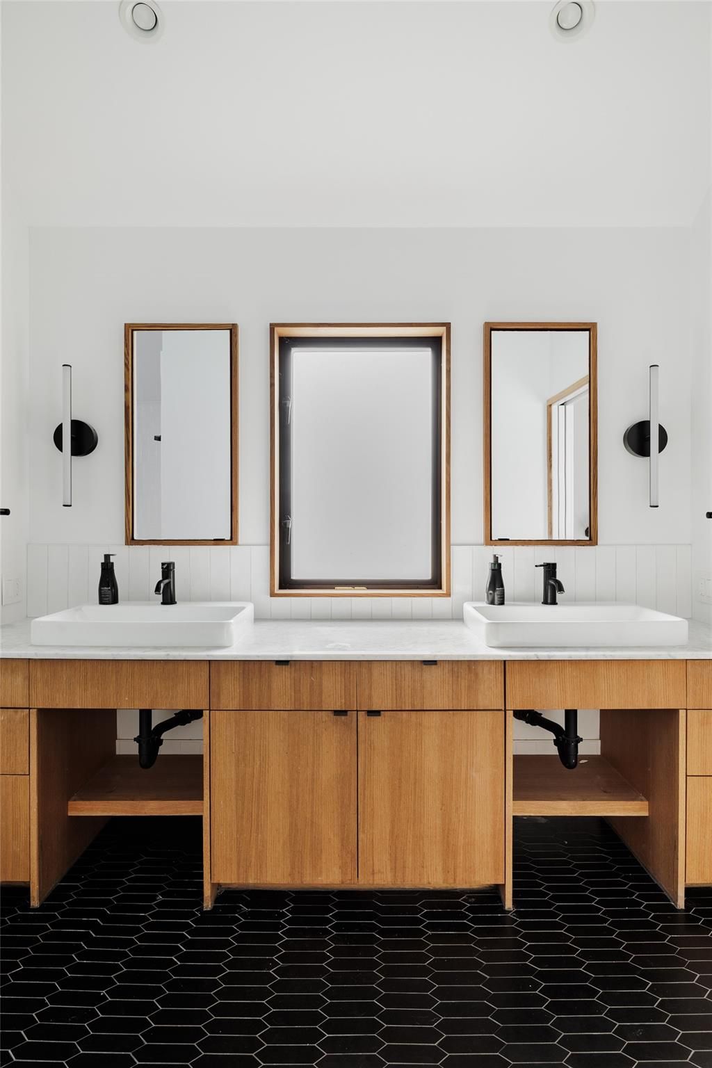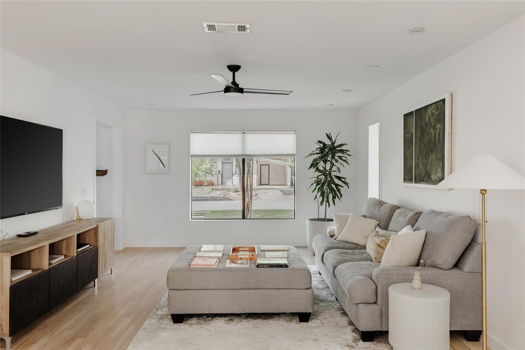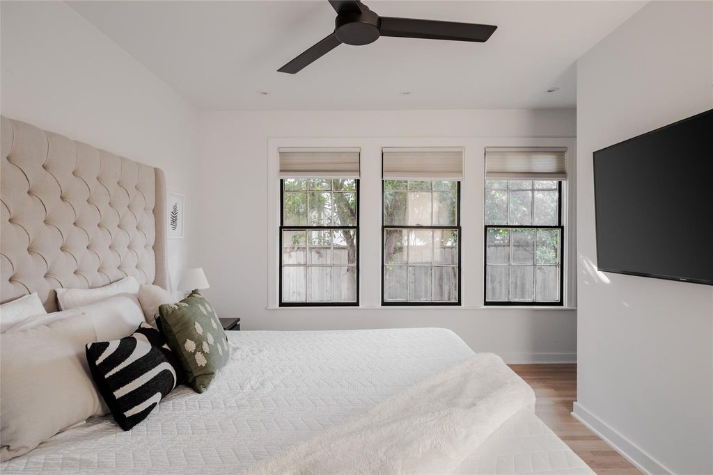 Pre-Inspection available, turnkey opportunity. A rare 1948 bungalow beautifully reimagined by Jobe Corral Architects and brought to life by Texas Construction Company. They preserved the soul of the original while layering in thoughtful luxury"”high ceilings, warm wood floors, and glorious Austin sunlight pouring through every window. The kitchen is the beating heart of the home, built for connection. Think polished quartzite island, Jenn Air appliances, custom cabinets with laid-back open shelving, and Cle tile that adds just the right spark. Every window frames a moment"”looking out onto a deck and lush outdoor spaces just waiting for your next gathering. Downstairs, you'll find two generous bedrooms, each with its own ensuite bath and ample closet space. A cozy media room, tucked-away office, actual laundry room (hallelujah!), hidden storage, and a powder bath so pretty it deserves its own moment. Upstairs, a sun-filled loft sets the stage for whatever you need"”a yoga nook, reading retreat, or creative corner. Then there's the dreamy primary suite: vaulted, beamed ceilings, dual walk-in closets, double vanities, and a spa-like wet room with walk-in shower that makes morning routines feel like self-care. The large lot is unique for the area, with over a quarter acre to stretch out, entertain, or build that pool you've always wanted. Maybe even a charming casita. Jasmine blooming, iced tea in hand"”you get the picture. The home is dialed in with solar panels, a tankless water heater, and a rainwater collection system, all seamlessly integrated. And let's not forget location. You're wrapped in the best of Austin: North Loop's charm, Hyde Park's trees, Cherrywood's soul, and Mueller's energy. With downtown, UT, the Domain, and the airport all within reach"”it's not just convenient, it's the center of everything.