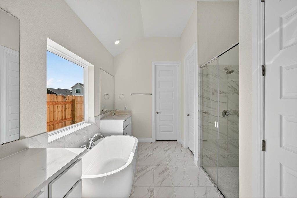 Welcome to GFO Home's Beautiful Brand New One-Story Taylor floor plan from our upscale Freedom Series located in the Eco-Friendly and Amenity-Rich Neighborhood of Whisper Valley! This spacious home boasts 3 bedrooms, 2 bathrooms, and a 2-car garage. Featuring Revwood flooring, Quartz Countertops, High 11 ft Ceilings, & 8ft Doors throughout, highlights in this home also include an elegant Rotunda at the foyer, a Private Study or additional Flex Room, an Open Concept Family Room, a Formal Dining area, and Gourmet Kitchen with a Built-in Electric Appliances, 30" Cooktop, Center Island, and attached Breakfast Area. Enjoy a spacious Covered Patio leading out to the Private Backyard with no rear neighbors, and a luxurious Primary Bedroom with an Upgraded spa-inspired Primary Bathroom featuring a designer Freestanding Soaking Tub and large Walk-in Closet. This home also includes Sustainability Features like Solar Panels, Geothermal HVAC, and an EV Charging Outlet. And with Whisper Valley's Stunning Amenity Center, Fitness Center and Resort-Style Pool, you can enjoy everything this exquisite Taylor home has to offer. Estimated Completion mid-September.