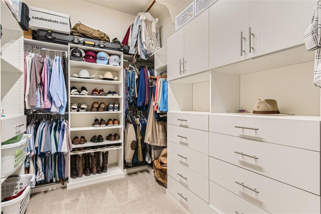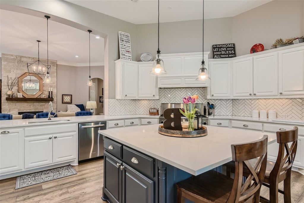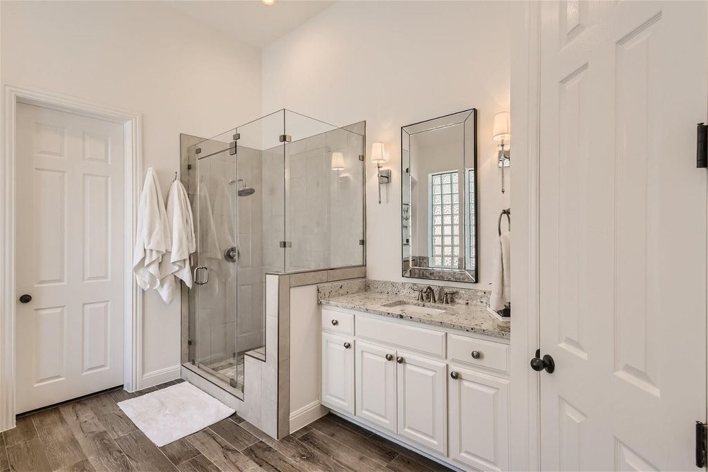 This home leaves nothing more to be desired. This corner home with side garage is an extremely rare, mostly one story plan with 4 bedrooms and 4 bathrooms down, plus an office, and 5th bedroom/bath, media and game room with wet bar upstairs. All white walls recently painted in interior in Summer 2025 (new photos coming). Fully updated kitchen with quartz counters, built in refrigerator, 3 ovens and a warming drawer, large center island and 8 burner gas cooktop. Spacious breakfast area provides a wonderful living space because in this large kitchen, THIS is where everyone wants to gather. Could be used as an additional dining area, if that is something you prefer.Primary bedroom with french doors that open to a large outdoor living space has an updated primary bathroom with wood tile floors and granite counters, and a custom closet system that provides all the organization you could possibly need. Additional bedrooms down all have their own bathrooms, two being en-suite and the last just adjacent to the bedroom in the hallway. Upstairs media room is spacious, and dark, providing an incredible movie experience. Game room pool table to convey for your favorite pool competition with friends. Upstairs bedroom and bath are private and a great space for guests, overlooking the pool. This backyard is to die for with luscious landscaping, covered stone patio, dining area aside your outdoor kitchen and chlorine pool with custom waterfall and spa. This home really is the entertainer's dream home, both inside and out! Full lot landscape lighting in front and back. 3 car side entry garage with elevated garage shelving system for extra storage.