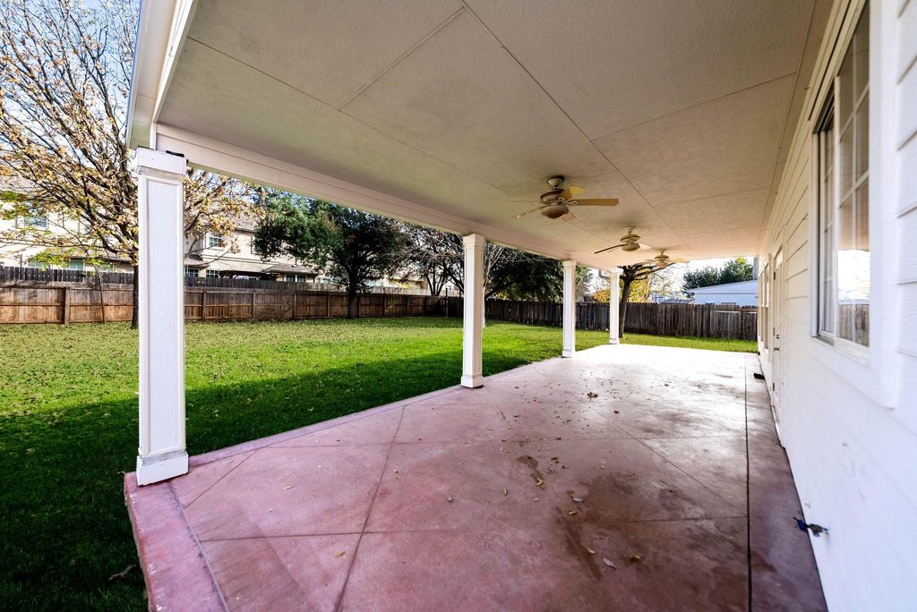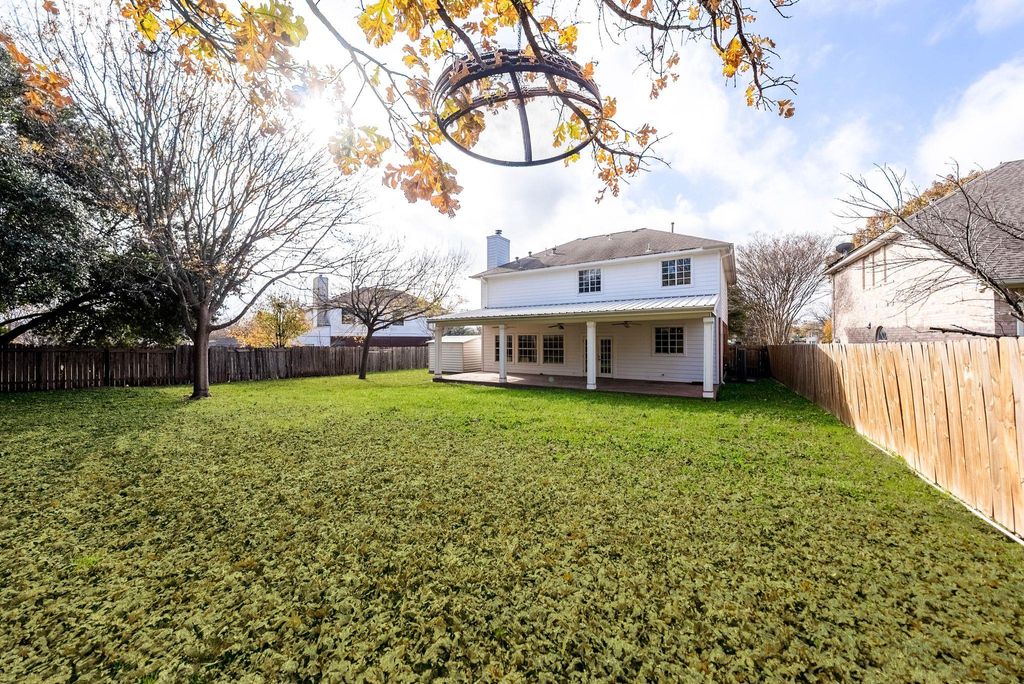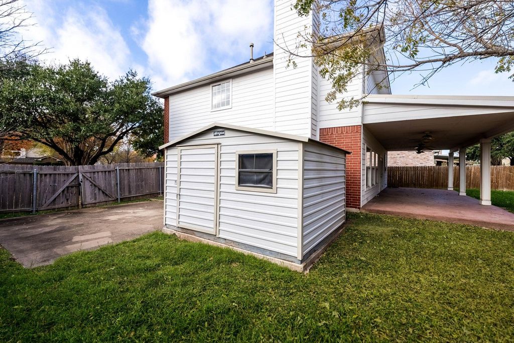 Super functional layout, fresh upgrades, and an unbeatable list of bonus features rarely found in homes at this price point "” including a quarter acre lot, expansive 40-foot covered patio, central vacuum system, full gutters, gas fireplace, water softener, large bay window, crown moulding, built-in speakers, blinds, and even a 10x12 storage shed plus 20x20 extra slab for play or projects. Downstairs is dedicated to everyday living and entertaining with all-tile flooring, two spacious living areas, two dining areas, bar seating at the kitchen, and a convenient powder bath for guests. Fresh interior paint, brand new carpet upstairs, and a new HVAC system offer peace of mind and move-in ready comfort. French doors lead to the oversized covered patio and generous backyard "” fully fenced and perfect for play, gardening, or future enhancements like a pool or outdoor kitchen. Upstairs, all bedrooms offer generous proportions, and the primary suite feels like a true retreat with vaulted ceilings, a Whirlpool jetted tub, rainfall shower, and custom Elfa closet system. Quick access to I-35, Parmer Lane, and Tech Ridge Center puts major employers like Dell, Samsung, Apple, and GM just minutes away, along with The Domain, Q2 Stadium, and St. David's Hospital. Parks and green spaces like Walnut Creek Park and Copperfield Nature Trail are also nearby "” ideal for walking, jogging, or weekend outings with trails, playgrounds, and picnic areas. Google fiber available.