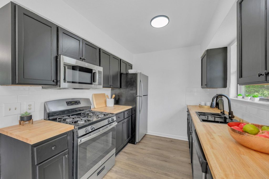 This isn't your average home, it's a reimagined space ready to be lived in and loved. Sitting on a generous corner lot with green space behind, this 5-bedroom, 2-bathroom home has been completely updated to meet the needs of a modern lifestyle. With a foundation leveled in 2025 and fresh LVP flooring throughout, this is a house that's as solid as it is stylish. Gone are the days of carpet, just sleek, durable flooring that can handle anything life throws at it. The matte black fixtures, lighting, and hardware give the entire house a cool, modern vibe, while the new butcher block countertops and backsplash in the kitchen bring in warmth and character. And let's talk about the garage conversion, what was once a standard space has now become two versatile rooms. Need an office, a home gym, a craft space, or just extra bedrooms? You've got options here. The fenced yard gives you the freedom to make it your own, room for a garden, a patio, or just a place to enjoy the outdoors. And with easy access to downtown Austin, Mueller, and the airport, this home offers the perfect balance of peaceful living and proximity to everything you need. This house isn't just "updated", it's been thoughtfully transformed into a space that invites you to step inside and start something new.