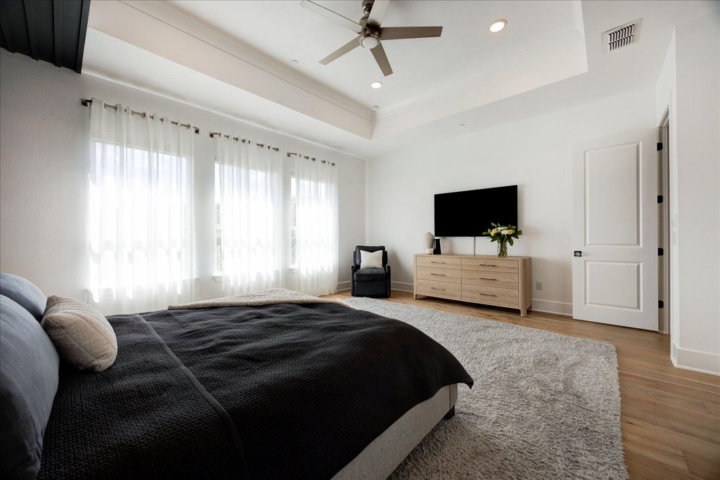 | INTERIOR | Beamed Ceilings, Ceiling Fan(s), Chandelier, Coffered Ceiling(s), Crown Molding, Kitchen Island, Master Downstairs, Open Floorplan, Pantry, Recessed Lighting, Soaking Tub, Tray Ceiling(s), Walk-In Closet(s) |