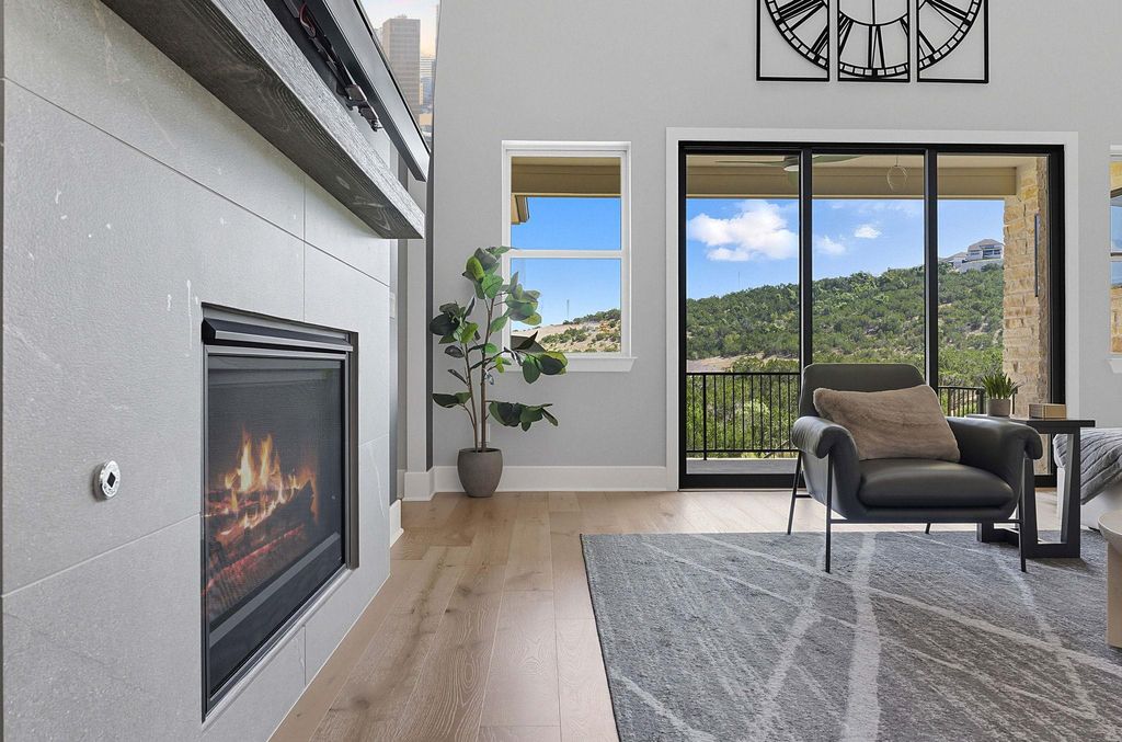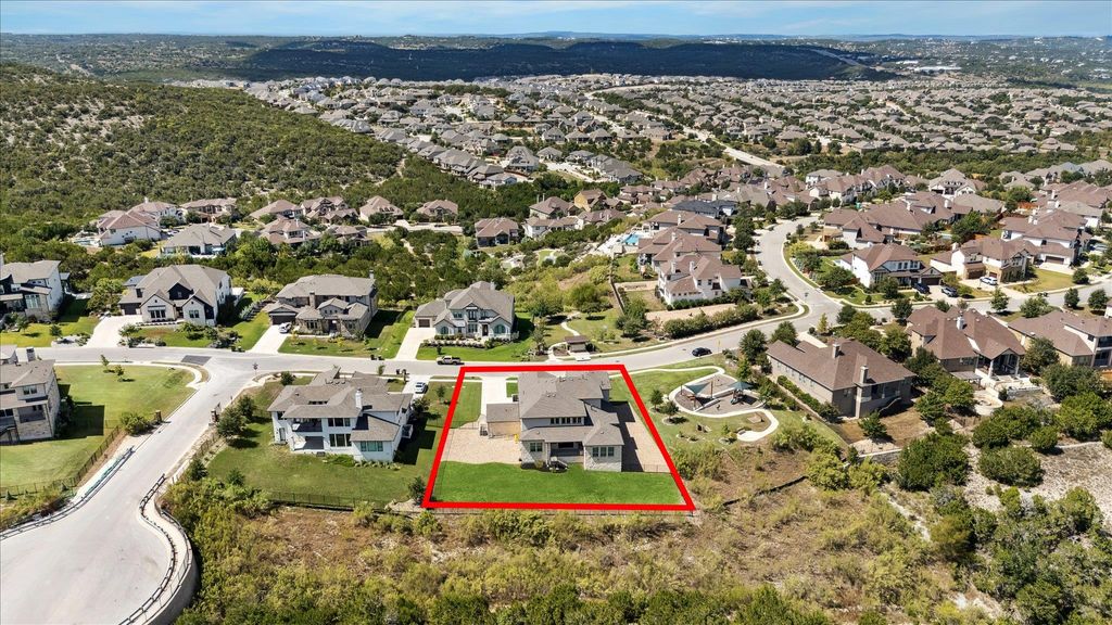 Perched in the exclusive gated section of the coveted Sweetwater community, this stunning 5,003 sq. ft. residence Blends timeless elegance w modern functionality, the home offers a private office, dedicated media room, flex/game room, & a fully equipped gym-providing abundant space to live, work, & play. Soaring windows frame sweeping greenbelt views, bathing the open living spaces in natural light. Warm white oak flooring, a striking fireplace,& seamless indoor-outdoor flow create a sophisticated yet inviting atmosphere-perfect for gatherings both large & small. The gourmet kitchen feat a Wolf 8-burner range w pot filler, built-in 60"Thermador refrigerator, quartz countertops, & custom cabinetry designed to discreetly tuck away small appliances. A spacious walk-in pantry adds functionality, while the bar-perfectly positioned between the elegant dining room and living area-makes entertaining effortless.The primary suite is a serene sanctuary, featuring serene greenbelt views & a custom, hand-crafted wood accent wall. The spa-worthy bath offers dual LED backlit vanities, an oversized soaking tub, & a walk-in shower crowned by a sparkling crystal chandelier. The custom-built, LED-lit closet ensures beauty and organization at every turn. Upstairs, 2 additional bedrooms w private baths, complemented by a game room, media room, & a hidden bonus space -an unexpected delight. W over $90K in state-of-the-art home automation & surround sound, plus a full sprinkler system, this residence is as smart as it is stylish .41-acre lot, ready to be transformed into your private oasis. Host unforgettable evenings at the outdoor kitchen while taking in panoramic Hill Country sunsets.Residents enjoy:Resort-style pools & sports courts,Sand volleyball & multiple playgrounds,Miles of hiking trails, greenbelts Top-rated LTISD schools Convenient to the Hill Country Galleria, Whole Foods, and the soon-to-open Trader Joe's Experience refined Hill Country living at 6817 Davenport Divide.