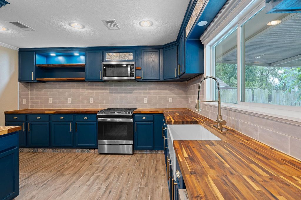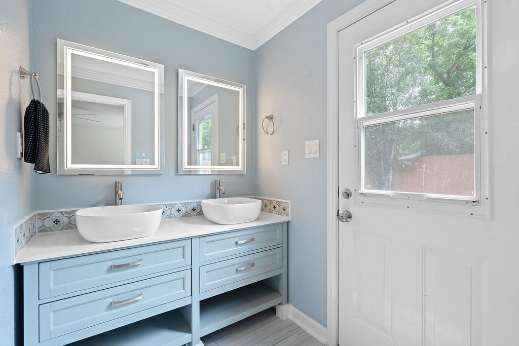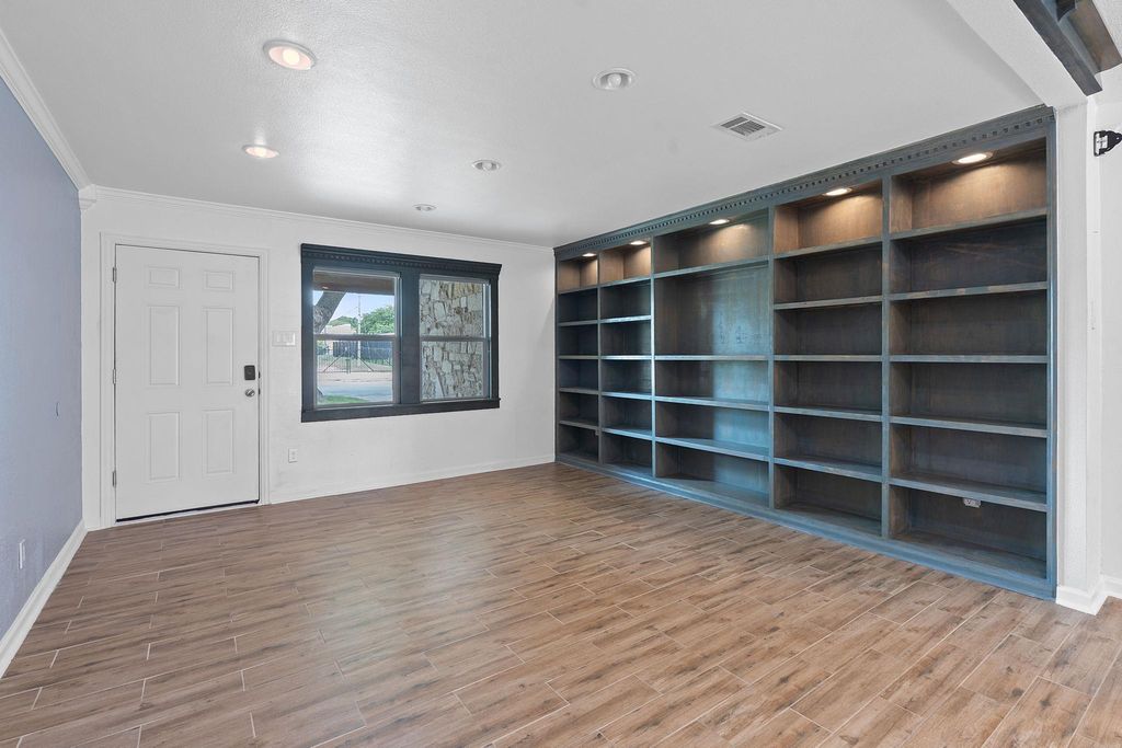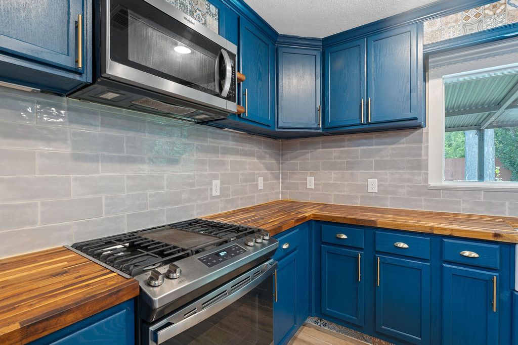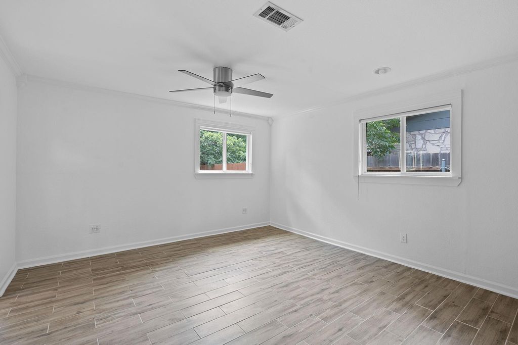 $10,000 price drop, updates and a strategic location. This roomy ranch is a find! Major systems have been completely updated"”including much plumbing updated, premium HVAC, and a 50-year roof. The expanded kitchen handles everything from weeknight dinners to weekend entertaining with ease. Featuring beautiful butcher block counters, gas range, wine storage, and an oversized pantry/laundry combo that keeps daily essentials organized and out of sight. Once a fourth bedroom, there is a bespoke closet for the primary bedroom with moody, styling dark green paint and stylish custom storage. Can convert to bedroom, office, or whatever your life demands.The generous front room with floor-to-ceiling built-ins provides elegant dining or living space. The private primary suite is positioned away from main living areas with a view to the park-like backyard, complete with spa-like ensuite featuring dual vanities, soaking tub, and luxurious double rainhead shower. The mature tree-shaded backyard offers privacy and room to play"”perfect for relaxing as-is or adding your personal touches like raised beds or a pool. This gem of a location means you don't have to mess with parking and can walk to Q2 Stadium for games. Quick drive to 183, 35, MoPac and the Domain. The best of both worlds: peaceful residential living with quick access to dining, entertainment, and city amenities. This home delivers comfort, convenience, and location without the project list. Note: lights in the living/dining space are not currently dimmable due to inactive wifi service.