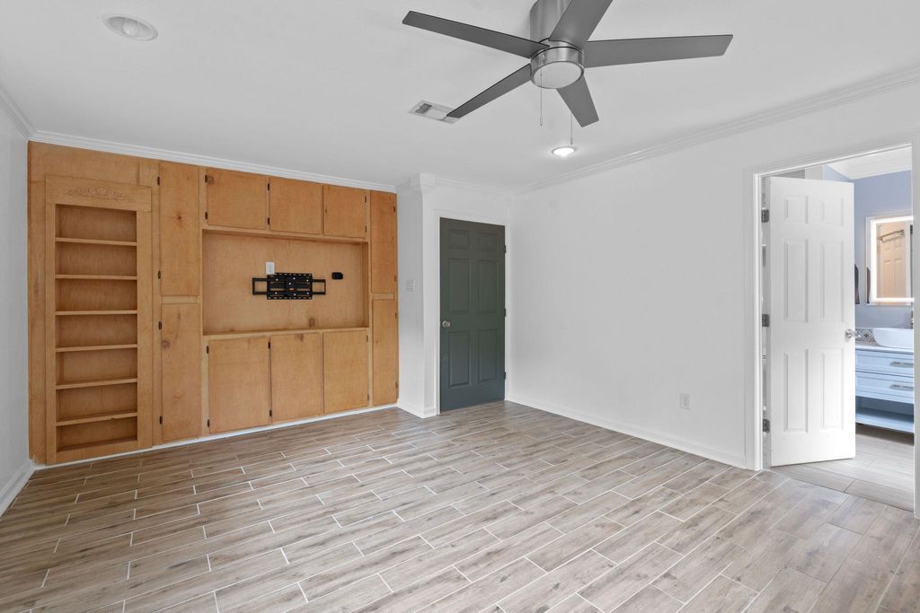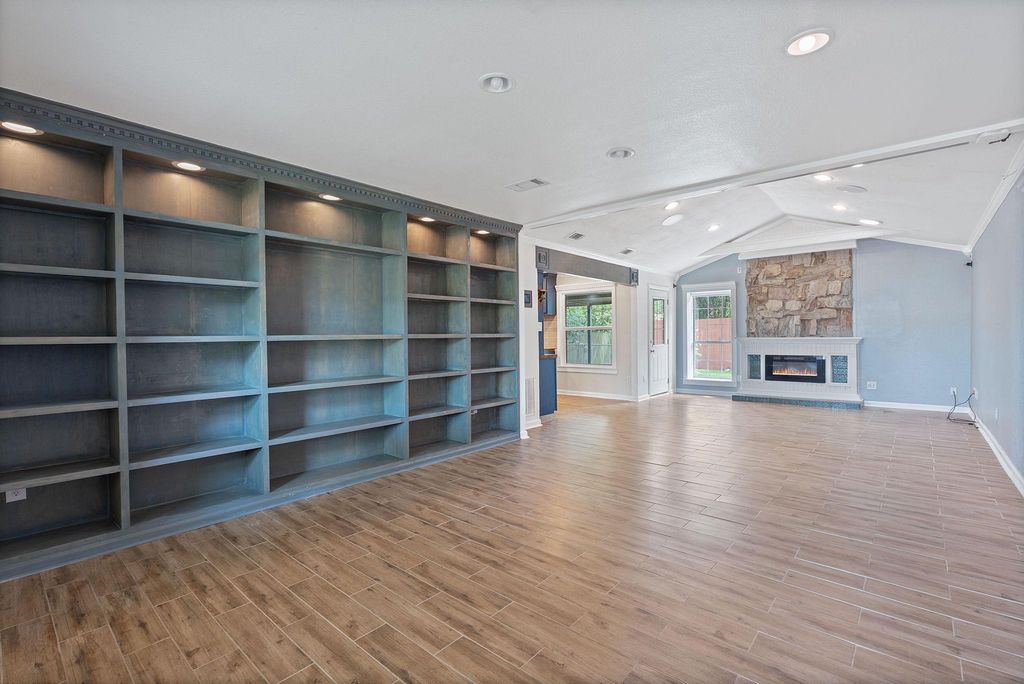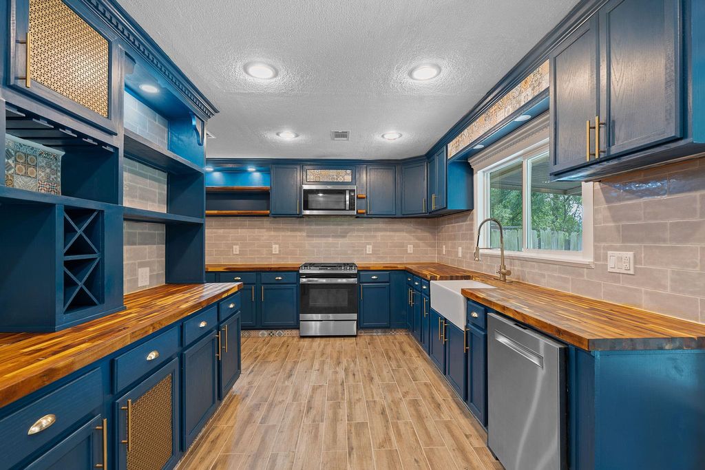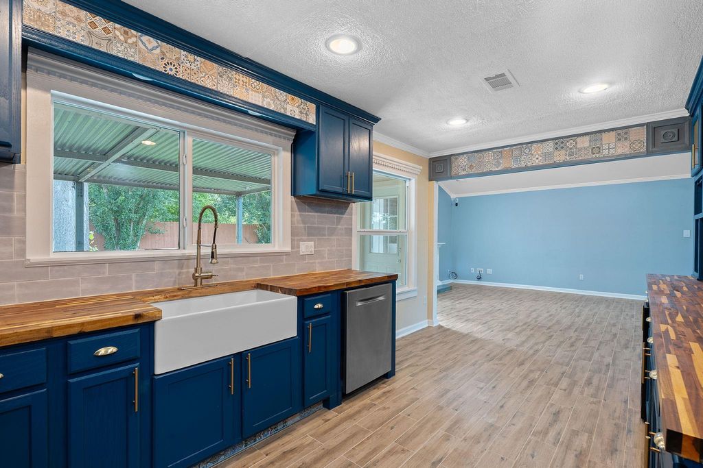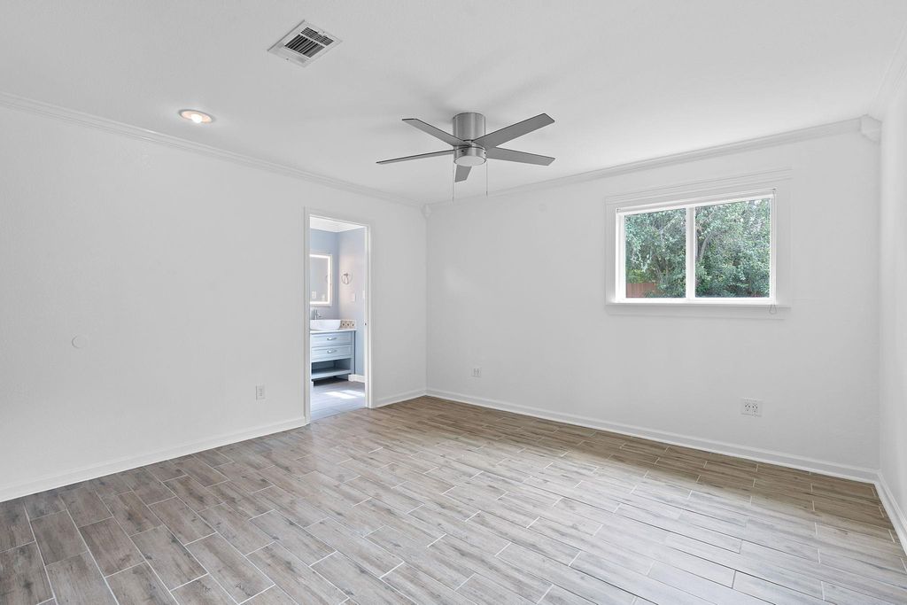 $10,000 price drop, updates and a strategic location. This roomy ranch is a find! Major systems have been completely updated"”including much plumbing updated, premium HVAC, and a 50-year roof. The expanded kitchen handles everything from weeknight dinners to weekend entertaining with ease. Featuring beautiful butcher block counters, gas range, wine storage, and an oversized pantry/laundry combo that keeps daily essentials organized and out of sight. Once a fourth bedroom, there is a bespoke closet for the primary bedroom with moody, styling dark green paint and stylish custom storage. Can convert to bedroom, office, or whatever your life demands.The generous front room with floor-to-ceiling built-ins provides elegant dining or living space. The private primary suite is positioned away from main living areas with a view to the park-like backyard, complete with spa-like ensuite featuring dual vanities, soaking tub, and luxurious double rainhead shower. The mature tree-shaded backyard offers privacy and room to play"”perfect for relaxing as-is or adding your personal touches like raised beds or a pool. This gem of a location means you don't have to mess with parking and can walk to Q2 Stadium for games. Quick drive to 183, 35, MoPac and the Domain. The best of both worlds: peaceful residential living with quick access to dining, entertainment, and city amenities. This home delivers comfort, convenience, and location without the project list. Note: lights in the living/dining space are not currently dimmable due to inactive wifi service.