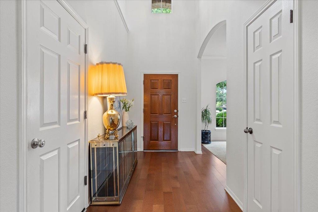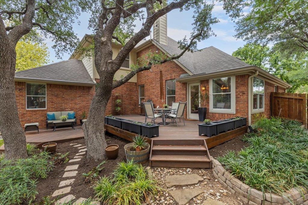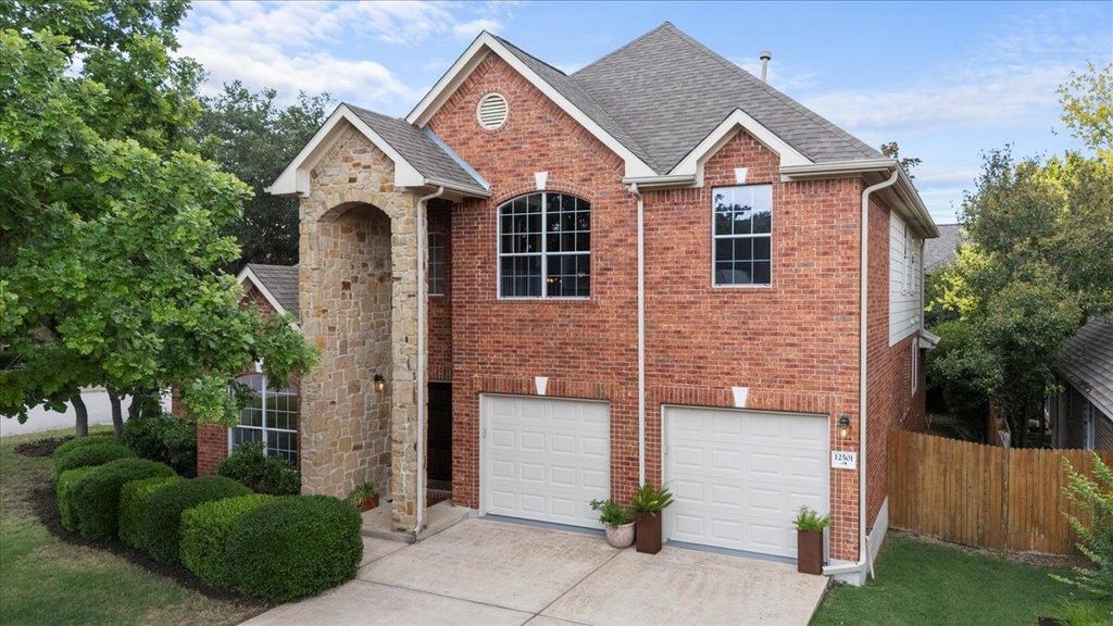 Welcome to 12501 Bright Sky Overlook, a stunning private retreat nestled in the desirable Savannah neighborhood of Steiner Ranch, Austin, TX. This beautifully maintained home offers a perfect blend of comfort, style, and outdoor living on a spacious corner lot. Step inside to find a warm and inviting interior featuring rich wood flooring that brings the outdoors in. The formal dining room greets you upon entry, leading seamlessly into the open-concept living and kitchen area. The kitchen boasts breakfast bar seating, ideal for casual meals and entertaining, with abundant natural light pouring in through large windows that showcase picturesque backyard views. Work or study from home in the dedicated private home office, complete with elegant glass French doors and ample space for a guest bed or Murphy bed, providing flexibility for visitors or additional sleeping arrangements. The primary suite, conveniently located on the main level, offers a tranquil retreat with an attached bath and a generous walk-in closet. Upstairs, you'll find three additional bedrooms, a full bathroom, and a spacious game room"”perfect for family fun and entertaining guests. The large, private backyard is a true outdoor oasis, featuring an expansive Brazilian hardwood deck, stone pathways, native trees, lush plants, and landscape lighting"”ideal for gatherings, relaxing evenings, or outdoor activities. The 2.5-car garage includes a half tandem space, perfect for a golf cart, workbench, or extra storage. The home's prime location offers access to top-rated schools, community amenities such as pools, sports courts, lake access, hiking trails, and frequent community events. Experience the best of Austin living in this exceptional home"”schedule your tour today!
