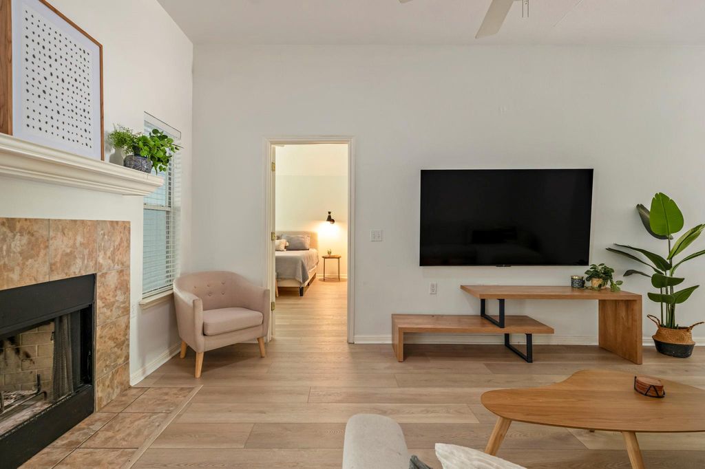 Move-in ready and sold fully furnished, this 3-bedroom, 2-bathroom home in South Austin's East Congress neighborhood offers an ideal combination of comfort and convenience. The property features a spacious screened-in porch, perfect for relaxing or entertaining, and a two-car attached garage. Inside, the home features updated Stoneform flooring, natural light, and the appliances are included in the sale (refrigerator, dishwasher, washer, and dryer). The living area includes a 75-inch Smart TV, and the primary bedroom offers a 42-inch Smart TV. Blackout curtains in every room ensure restful sleep. Located within walking or biking distance to The Yard"”home to Still Austin, Spokesman Coffee, and St. Elmo Brewing"”and just minutes from South Congress Avenue, St. David's South Austin Hospital, and downtown Austin, this home is a turnkey opportunity in a highly desirable location.