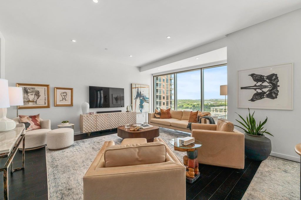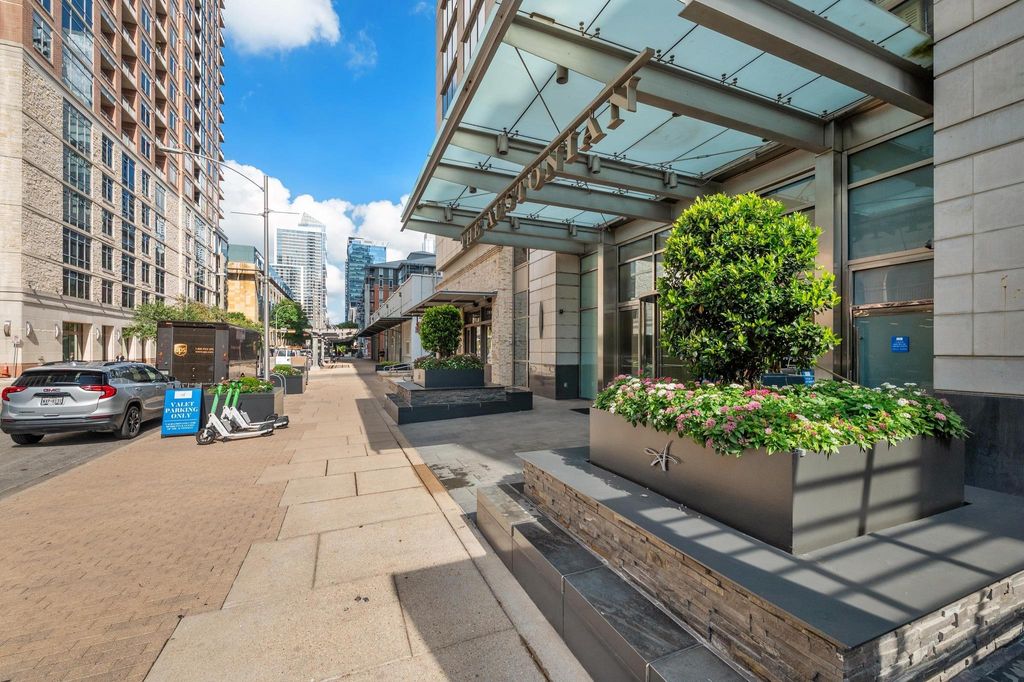 Unit 13A at The Austonian is a 1-bedroom, 1.5-bathroom residence showcasing modern upgrades throughout, from sleek cabinetry and premium appliances to thoughtfully curated lighting that elevates every space. The open-concept layout maximizes the flow from the kitchen to the living area. Expansive floor-to-ceiling windows frame striking city views and drench the interior in natural light. The bedroom feels calm and contemporary, with a spa-style ensuite featuring sophisticated finishes and a glass-enclosed shower. The walk-in closet offers custom storage built-ins with a smartly appointed desk or vanity nook. A well-placed powder bath adds everyday convenience for guests without compromising privacy. The covered balcony allows the skyline to set the ambiance. With its modern polish, abundant sunlight, and seamless indoor-outdoor connection, Unit 13A captures the best of The Austonian's high-rise allure right in the heart of Downtown Austin. The Austonian boasts 40,000 sq ft of amenities for 174 units, a rare ratio for Austin condos that ensures privacy and exclusivity. Luxuries include valet parking, a 56th-floor fitness center, pool deck, BBQ areas, a spa room, guest suites, dog park and grooming area, and 24-hour concierge service reserved for owners only. Perfectly located in downtown Austin, The Austonian provides quick access to the Capitol, restaurants, parks, and entertainment. With proximity to light rail stops and major roadways, commuting to Austin Bergstrom airport is effortless. This residence is ideal for those seeking a primary home, a base for exploration, or a part of a residential portfolio. Tax and assessed values are estimates for illustration purposes only. All figures should be independently verified. Call or text agent with 24-hour notice to schedule a tour.