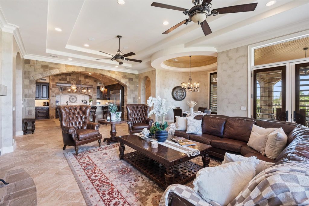Exquisite luxury home by Sierra Homes offering unparalleled craftmanship and stunning lake views. Meticulously crafted with hand-cut stone accents, this residence epitomizes elegance and sophistication. Step inside to discover a grand foyer adorned with soaring ceilings and custom millwork, setting the tone for the exquisite design found throughout. The spacious floor plan seamlessly integrates formal and informal living spaces, ideal for both entertaining and everyday living. The gourmet kitchen is a chef's dream, featuring top of the line Wolf and Subzero appliances, Miele coffee maker and a large center island. Retreat to the luxurious master suite, complete with a spa like ensuite bathroom, and walking closets. This home features two main bedrooms downstairs and additional bedrooms upstairs offer comfort and privacy for family and guest alike. Upstairs, a spacious game room provides endless entertainment possibilities, while a private media room offers a cinematic experience without ever leaving home. Designed for both comfort and efficiency, this home is equipped with foam insulation and a drilled well, ensuring minimal water bills and a maximum sustainability. Wine enthusiasts will delight in the dedicated wine room showcasing your prized collection in style. Relax and unwind in the resort-inspired backyard, complete with a pool, inviting spa, and a lush landscaping. Whether hosting intimate gatherings or grand soirees, this outdoor retreat provides the perfect setting for creating lasting memories with family and friends. This property also features a detached guest home, providing a serene retreat for visitors. Boasting a cozy bedroom, complete with its own full bath, kitchen, and living area. 210costabella.com