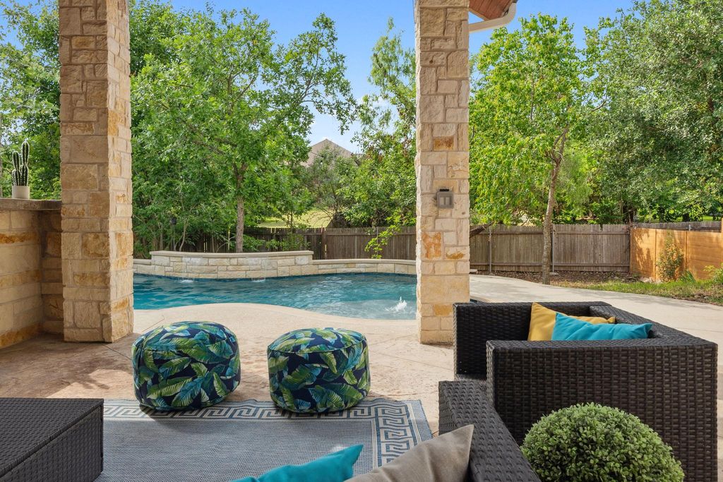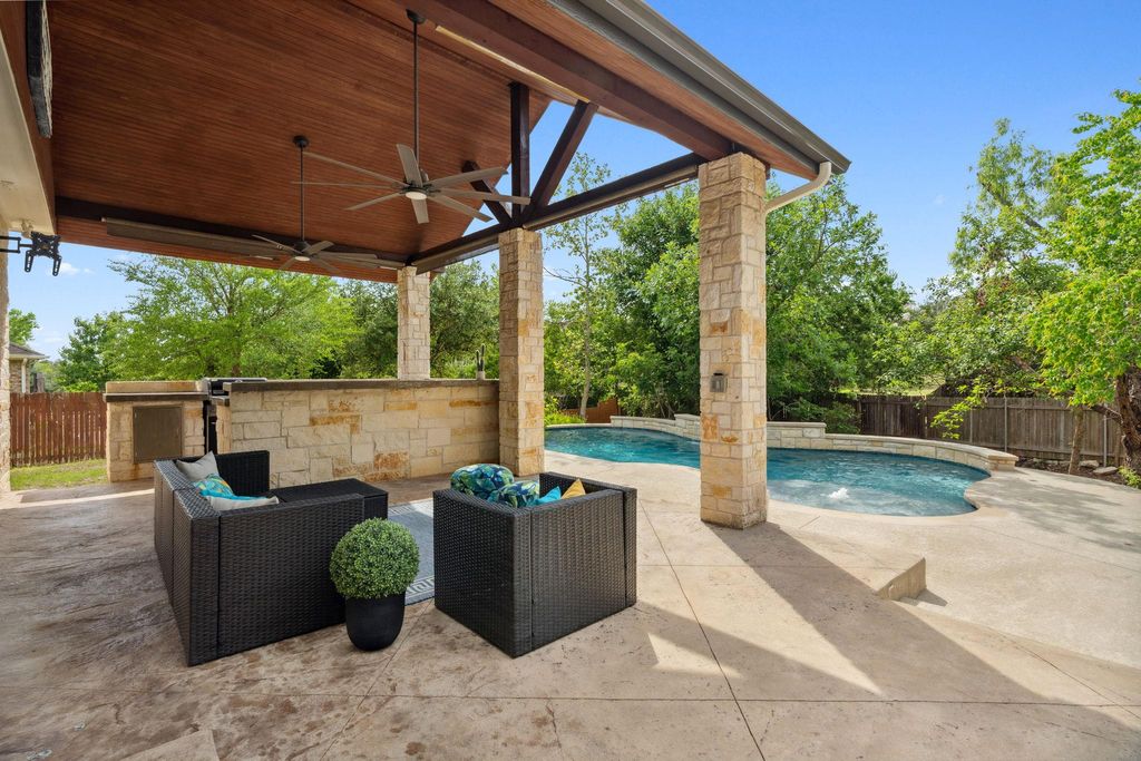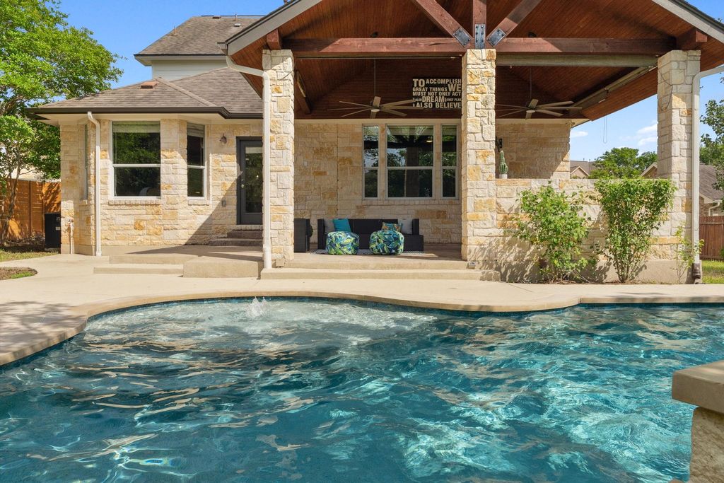 Welcome to 7820 Oteka Cove, where the backyard steals the show! Tucked on a quiet cul-de-sac, this private retreat features a sparkling pool, lush landscaping, and an expansive covered patio with a built-in outdoor kitchen"”perfect for unforgettable gatherings or peaceful nights under the stars. Inside, the home offers over 3,600 sq. ft. with 5 bedrooms, 4 full bathrooms, and open, light-filled living spaces. The main-level primary suite includes a spacious walk-in custom closet and views overlooking the yard, while upstairs brings extra bedrooms, a media room, and game room for endless versatility. A 3-car garage and prime location-just minutes from downtown Austin and steps to dining, coffee, and entertainment at Lantana Place"”make this home the complete package. With its rare blend of privacy, space, and a true resort-style backyard, 7820 Oteka Cove is made for both entertaining and everyday living.