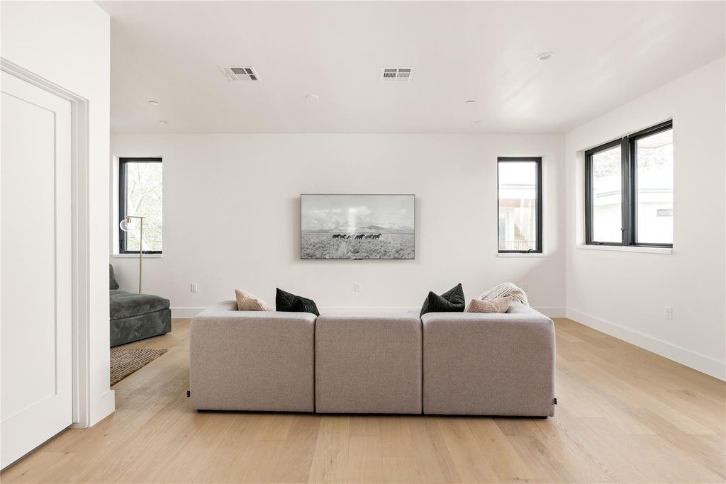 Located in a newly built, gated boutique community of just six homes minutes from downtown Austin and Zilker Park, South 1st Residences offer a rare blend of privacy, design, and urban convenience in one of the city's most coveted corridors. Designed and built by award-winning Howdy Homes, named AIA Austin 2025 VIP and featured in The Wall Street Journal, TRIBEZA, and Austin Home Magazine, these residences are thoughtfully crafted to deliver a modern, organic living experience that feels both refined and inviting. Interiors are anchored by soft neutral palettes of beige, cream, and taupe, complemented by natural textures and light-to-medium wood tones that create a calming connection to nature while maintaining a sophisticated, contemporary aesthetic. This spacious home offers 5 bedrooms, 3.5 bathrooms, and 2,815 square feet of well-planned living space, with high-end appliances including an under-counter microwave, custom cabinetry, concrete and hardwood flooring, and high-efficiency windows throughout. The gated community features private fenced yards framed by mature historic oak trees, providing a peaceful retreat just moments from Austin's best dining, entertainment, and outdoor recreation. A true standout is the expansive 1,200-square-foot private rooftop patio with sweeping downtown views, fully wired and plumbed for a future outdoor kitchen, sauna, and cold plunge, creating an unmatched indoor-outdoor lifestyle experience. The home also includes a dedicated entertainment room with wet bar, whole-home sound system readiness, and a builder warranty for added peace of mind. South 1st Residences represent a rare opportunity to own new construction with elevated design, premium finishes, and exceptional outdoor living in a prime central Austin location. Enjoy peace of mind with a blue-tape walk and final walkthrough conducted with the builder prior to closing, plus builder warranty issued at closing.