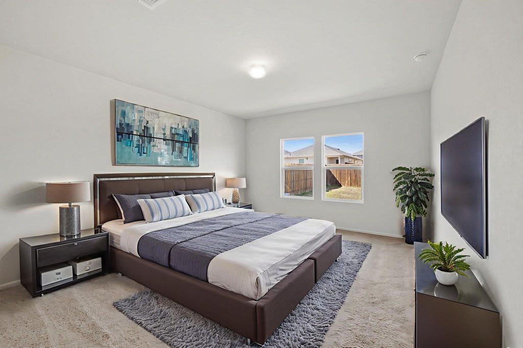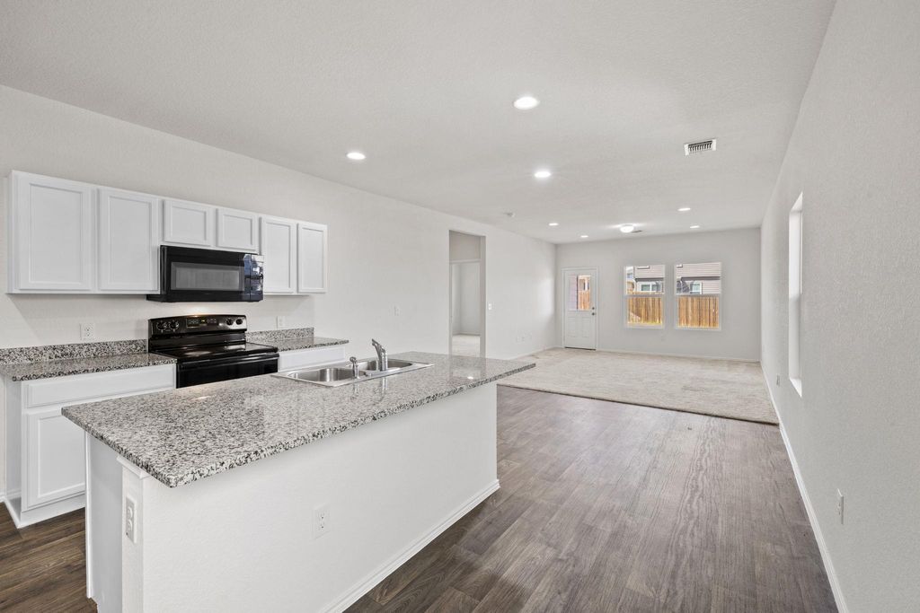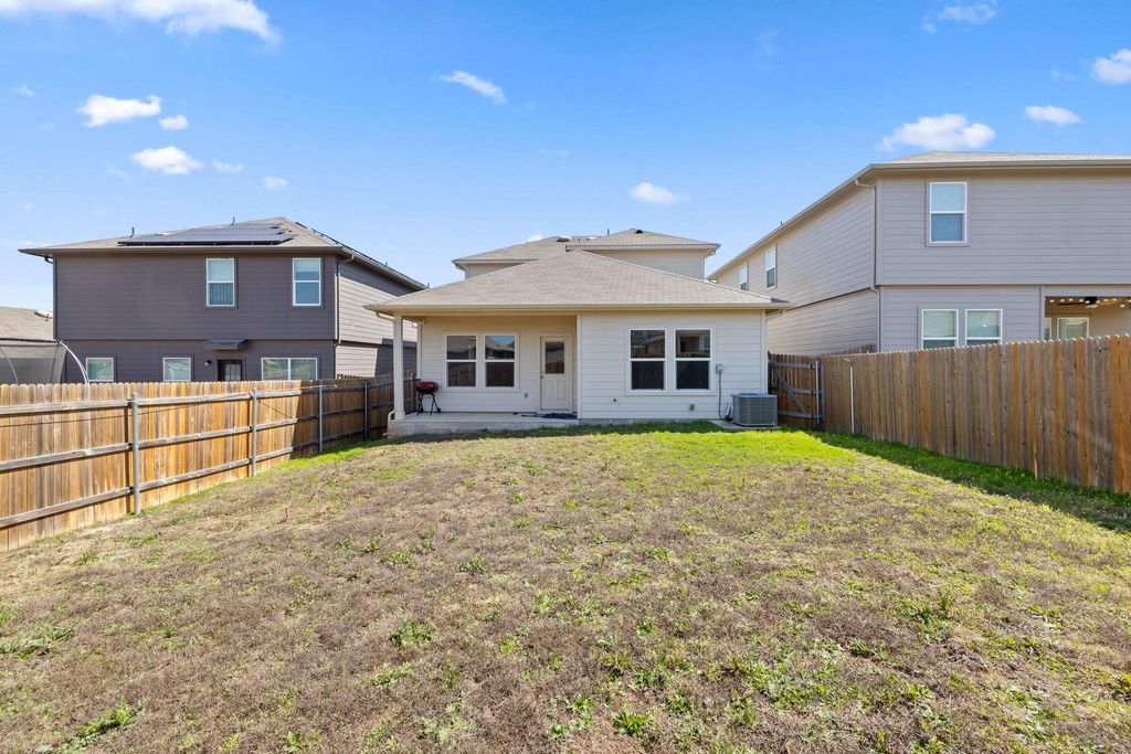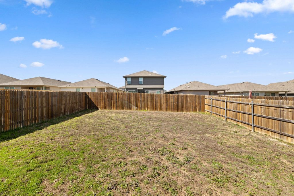 Welcome to 14916 Tuff Rd in Manor! This spacious and well-designed 4-bedroom, 2.5-bath home offers the perfect blend of comfort and functionality. The open-concept main level features a very large living room that flows seamlessly into the expansive kitchen, complete with granite countertops, crisp white cabinetry, a center island, and black appliances "” including the refrigerator. Washer and dryer are also included, making this home truly move-in ready. The oversized primary suite is conveniently located downstairs, providing privacy and a relaxing retreat. Upstairs, you'll find three additional bedrooms, a full bathroom, and a versatile second living area ideal for a game room, media space, or home office. Step outside to enjoy the spacious covered back porch overlooking the large, fully fenced backyard with in-ground irrigation "” perfect for entertaining, pets, or play. With low HOA fees and thoughtful features throughout, this home offers exceptional value in a growing Manor location. Schedule your showing today!