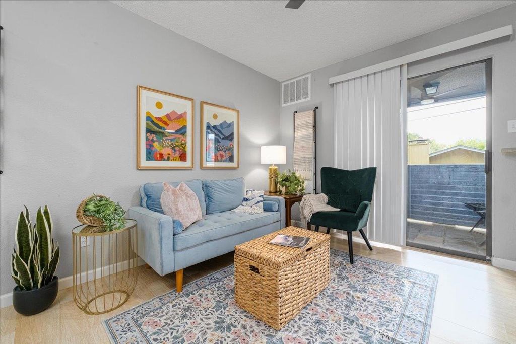 This charming 1/1 condo is exactly what you've been looking for! Great location and proximity to town. This first floor condo offers a great layout. Functional, open kitchen with ample cabinets and prep space. Stainless appliances. This unit can come with existing furnishings with accepted offer! The bedroom offers 2 large closets! Open floorplan, breakfast bar, covered patio. Stackable washer & dryer convey! Stainless appliances! No carpet. Updated lighting and fans. Low HOA fees. Gated complex with large pool! Metro bus stop right out front!
