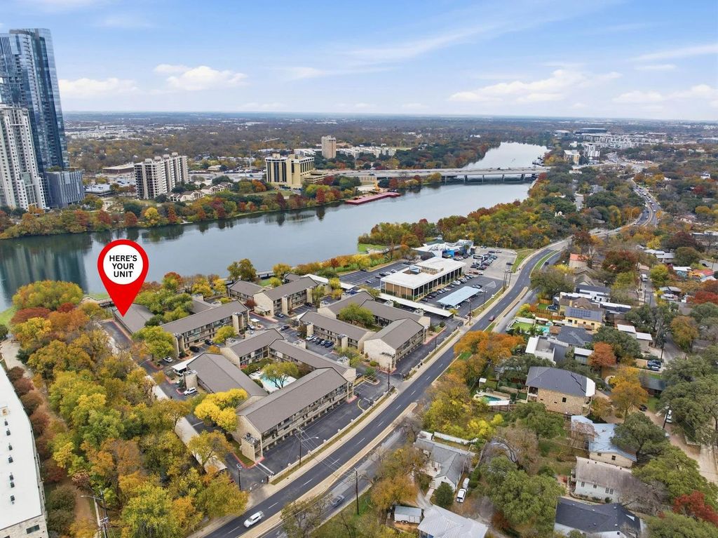 Fully renovated first-floor condo with stunning views of Downtown Austin and Lady Bird Lake. This 2-bedroom, 1-bath residence offers 791 square feet of thoughtfully updated living space with skyline and lake views from the front door and additional lake views from the back patios"”an uncommon setup in this location. The unit has been completely remodeled and is truly move-in ready. Updates include new flooring, fresh paint throughout, refinished walls, upgraded lighting, new windows and sliding patio doors, a brand-new kitchen with new cabinetry, quartz countertops, and new appliances, plus a fully remodeled bathroom featuring modern fixtures, a new vanity, and a walk-in shower. Major system upgrades include a new HVAC system and water heater. The condo includes two dedicated parking spaces, a rare perk this close to downtown. Located just 5-10 minutes from Zilker Park, Auditorium Shores, Downtown Austin, South Congress, East Austin, and some of the city's best restaurants, shopping, and outdoor attractions. Enjoy one of the best condo views Austin has to offer with unbeatable proximity to everything that makes the city special. The community features two swimming pools, on-site washer and dryer facilities, and a kayak/canoe launch with direct access to Lady Bird Lake. The unit benefits from a grandfathered HOA fee that is significantly lower than many nearby complexes and includes water, sewer, and trash. Condo has been warrantable in the past.