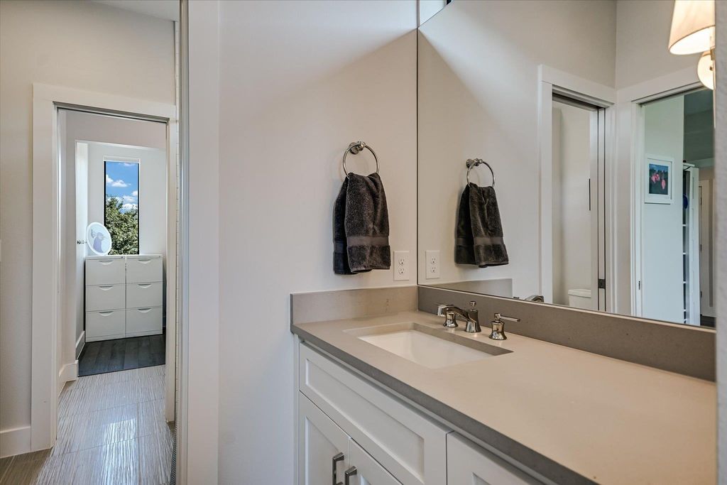 Tucked into the heart of Bouldin, 2205 South 3rd captures the essence of 78704 living"”effortlessly stylish, thoughtfully designed, and remarkably private. Built in 2016, the home blends clean architectural lines with warm, natural materials, offering a rare combination of urban access and everyday retreat. Entry is through a fully fenced front yard framed by mature native greenery and a screened porch that sets a quietly refined tone. The open-concept interior features expansive living and dining spaces anchored by a large kitchen, where custom cabinetry, generous storage, and a central island invite easy gatherings. Oversized sliders blur the line between indoors and out, opening to a covered patio and a heated and cooled pool wrapped in Ipe and Lueder decking"”a seamless extension of the living space. The main-level primary suite offers quiet separation with a spa-like bath and walk-in closet, while upstairs, three additional bedrooms and two full baths (one en suite, one Jack-and-Jill) provide flexibility for family, guests, or office space. A second living area on the upper level adds versatility for media, play, or work. Modern sustainability is integrated throughout, with solar panels and Tesla Powerwall batteries that offset electric costs and ensure protection from power outages. Additional exterior features include a standing-seam metal roof and full irrigation. A motorized alley gate offers convenient access to covered parking and storage, while the property's layered landscaping and fencing ensure privacy throughout. Set within walking distance of South 1st Street favorites"”Lenoir, Elizabeth Street Café, Bouldin Creek Café, and Polvos"”and minutes from downtown, this home offers the best of Austin's creative core. It's a modern farmhouse done right, offering privacy, comfort, and design integrity in one of the city's most coveted zip codes.
