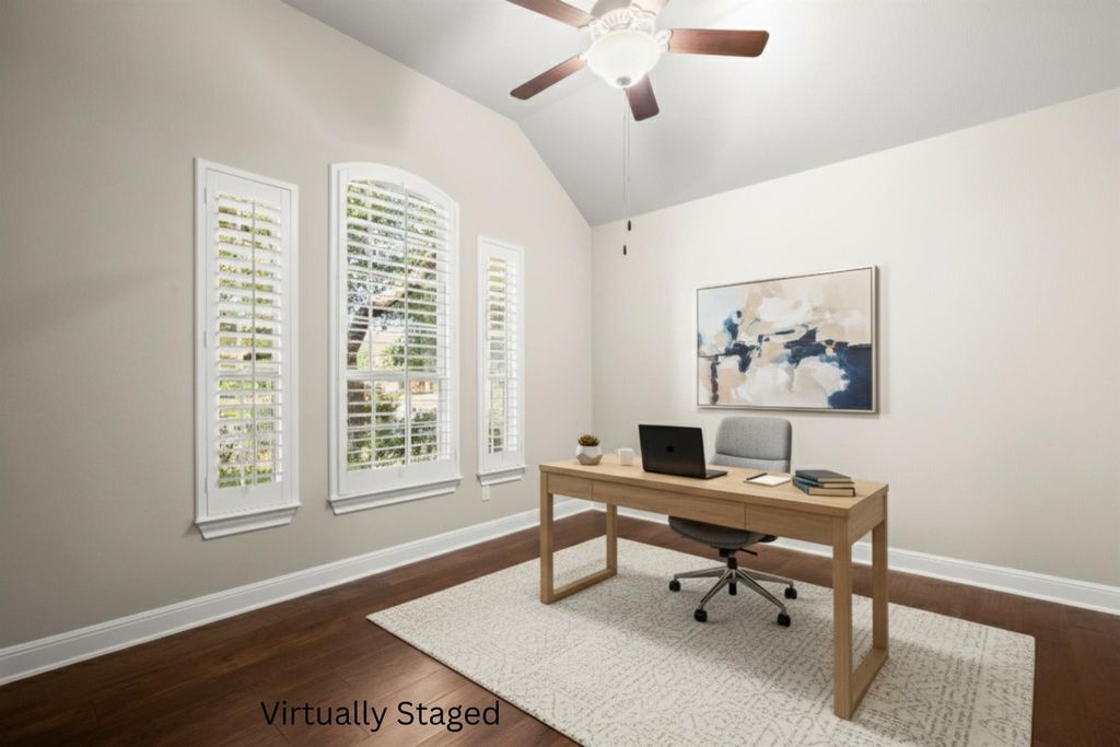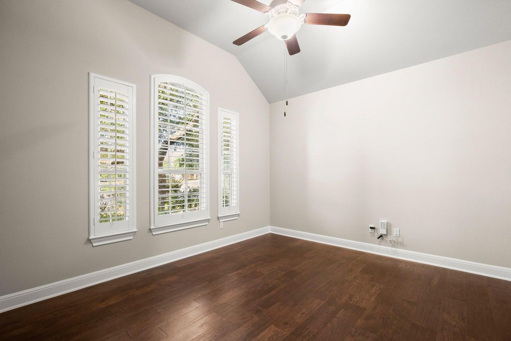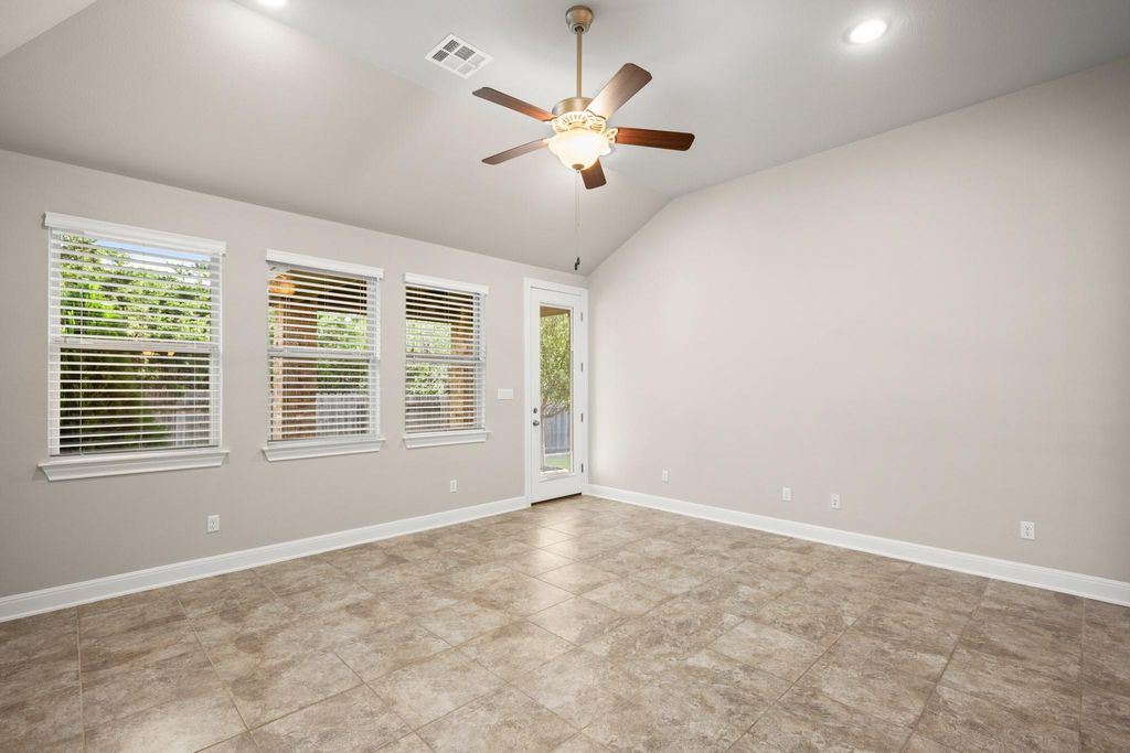Set against a scenic greenbelt, this beautifully refreshed home offers the perfect blend of comfort, style, and privacy in a quiet Leander neighborhood. Freshly painted from top to bottom in July 2025 and featuring brand-new carpet, it feels like a breath of fresh air the moment you step inside. The spacious layout includes three bedrooms plus a dedicated office with rich hardwood floors, plantation shutters, and elegant French doors, perfect for remote work or creative space. The heart of the home is the open-concept kitchen, complete with granite countertops, dark wood cabinetry, and stainless steel appliances. It flows effortlessly into the large living and dining areas, making it easy to gather, relax, and entertain. The primary suite is a true retreat with bay windows, a large walk-in closet, and a spa-inspired bathroom with dual vanities and a walk-in shower. Additional highlights include soaring 8-foot doors, abundant closet space throughout, a covered back patio with greenbelt views, and a refrigerator that conveys with the home. Located just steps from scenic trails leading to Veterans Memorial Park and offering access to a quiet community pool, this home checks every box. Move-in ready and thoughtfully upgraded, this is the one you've been waiting for.