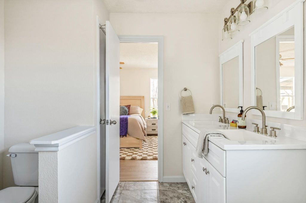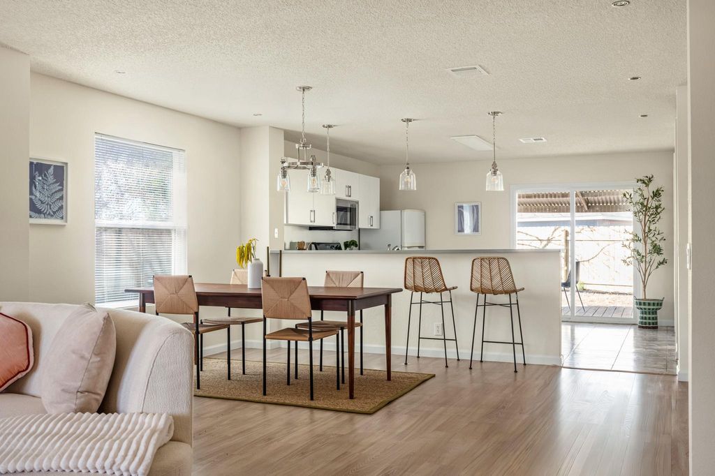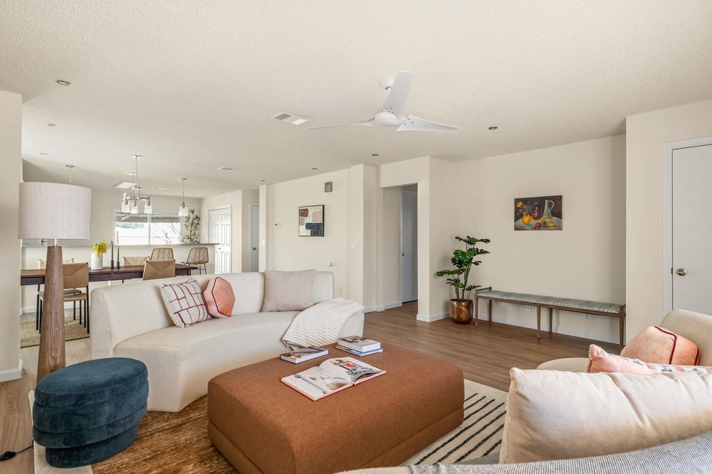 Thoughtfully updated and truly move-in ready, this single-story home delivers an easy, low-maintenance lifestyle with the heavy lifting already done. Recent upgrades include all-new landscaping, a new backyard fence, and fresh interior and exterior paint, creating a clean, polished first impression. Inside, the spacious layout features a generous living room that flows seamlessly into a dedicated dining area, with durable laminate and ceramic tile flooring throughout. The bright kitchen offers white cabinetry and an inviting setup for casual meals and everyday living. Two secondary bedrooms share a hallway bath, while the primary suite is tucked into its own private back wing of the home. The primary retreat includes a large walk-in closet and a sense of separation that's ideal for both everyday living and hosting guests. Just off the kitchen, a covered patio overlooks the private backyard"”perfect for relaxed evenings and weekend hosting. An oversized detached two-car garage with alley access adds storage, convenience, and extra privacy. Conveniently located near shopping and dining, this home is an ideal starter home or smart investment opportunity in a well-connected location.