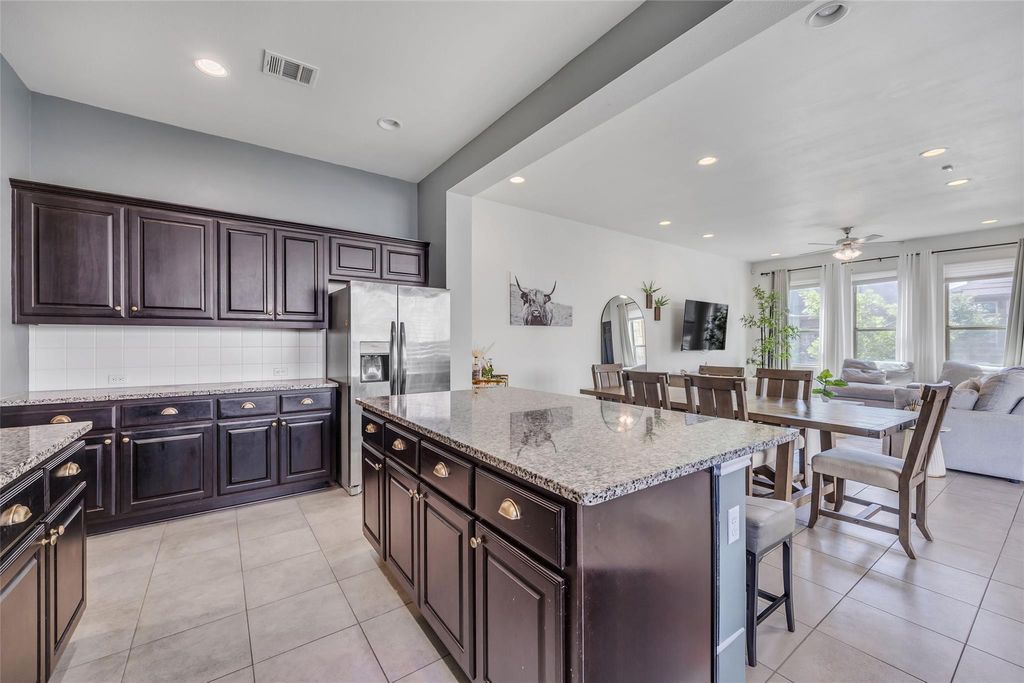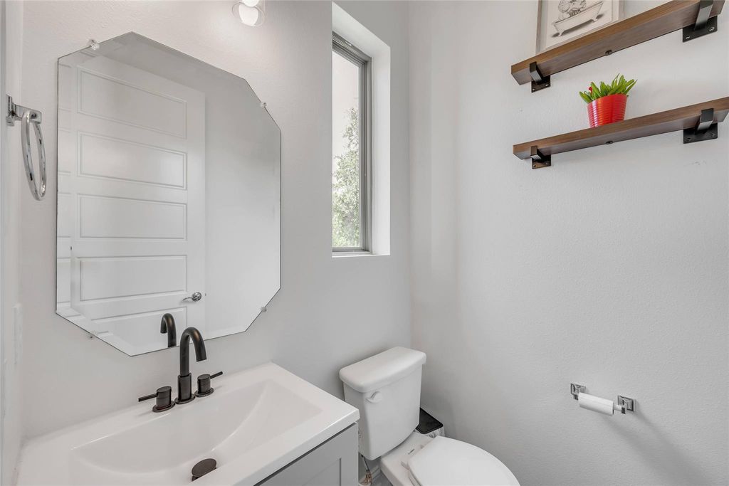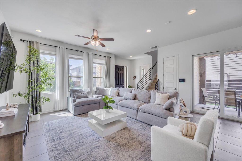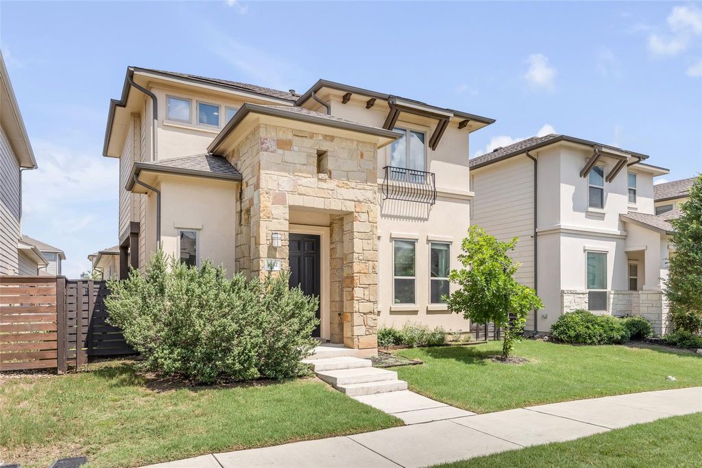 As you arrive, you'll immediately notice the home's distinctive Spanish-style charm, highlighted by its stucco exterior, stylish railing, and the rich Central Texas masonry framing the entryway. Ideally located just 7-10 minutes from Oracle HQ, Tesla HQ, airport and downtown. This property sits in one of the city's fastest growing areas, making it a smart investment with strong potential for future appreciation. Inside, you're welcomed by an open concept floor plan filled with natural light, enhanced by abundant recessed lighting that keeps the home bright during the day and well lit in the evening. A conveniently located half bathroom sits just off the living area for easy guest access. Do not miss the dual opening patio doors that lead to a covered outdoor living space and a low maintenance backyard featuring artificial turf that stays green all year, no matter how hot and dry or cold the weather gets. The kitchen offers beautiful cabinetry paired with granite countertops, creating a perfect blend of style and functionality. Just behind the kitchen, the primary suite provides a peaceful retreat with a spacious bedroom, a luxurious bathroom featuring a garden tub, a walk-in shower, and an oversized closet. The laundry room is thoughtfully located near the primary suite to make laundry easy and efficient. Upstairs, take note of the modern railing and the immaculately maintained additional bedrooms and bathrooms, offering plenty of space for family, guests, or a home office. This property is located on a quiet street in the heart of a well-kept community that features a dog park. This beautiful home will not last long, so be sure to schedule your visit today!