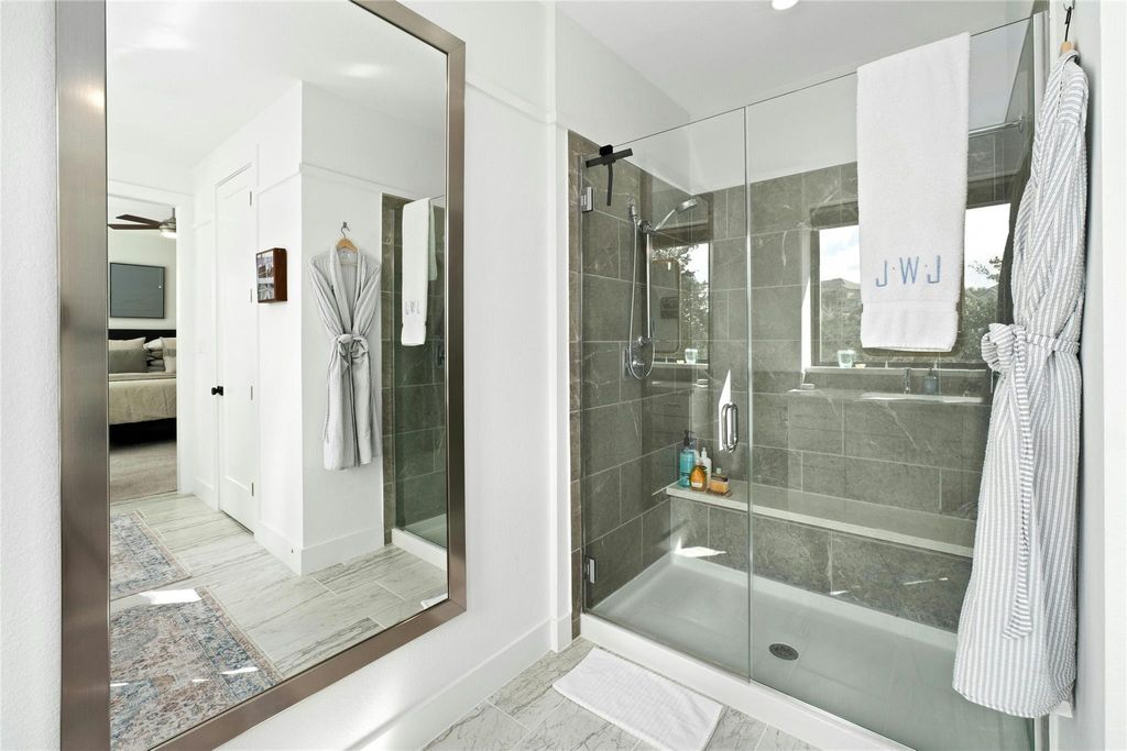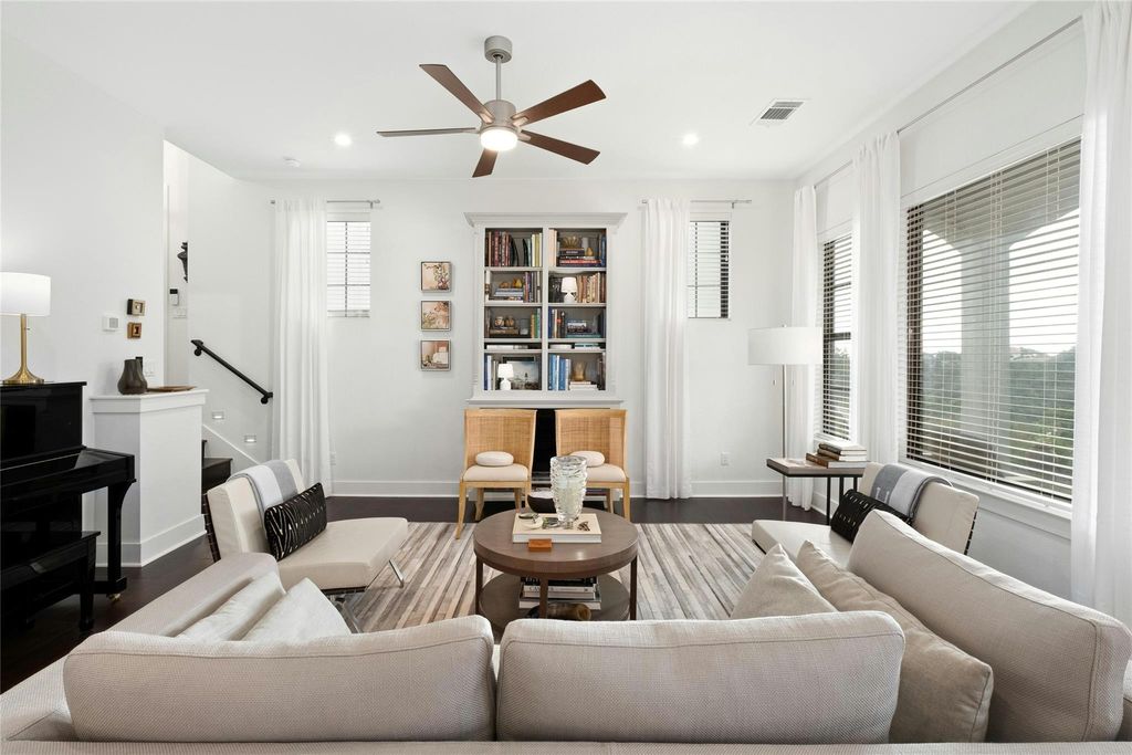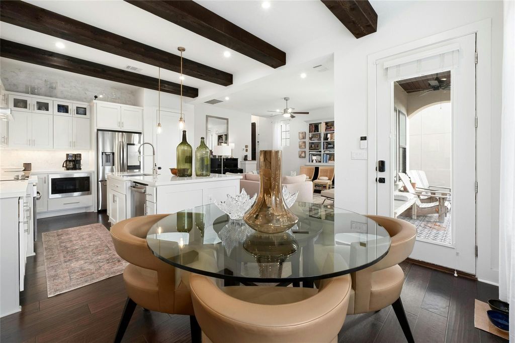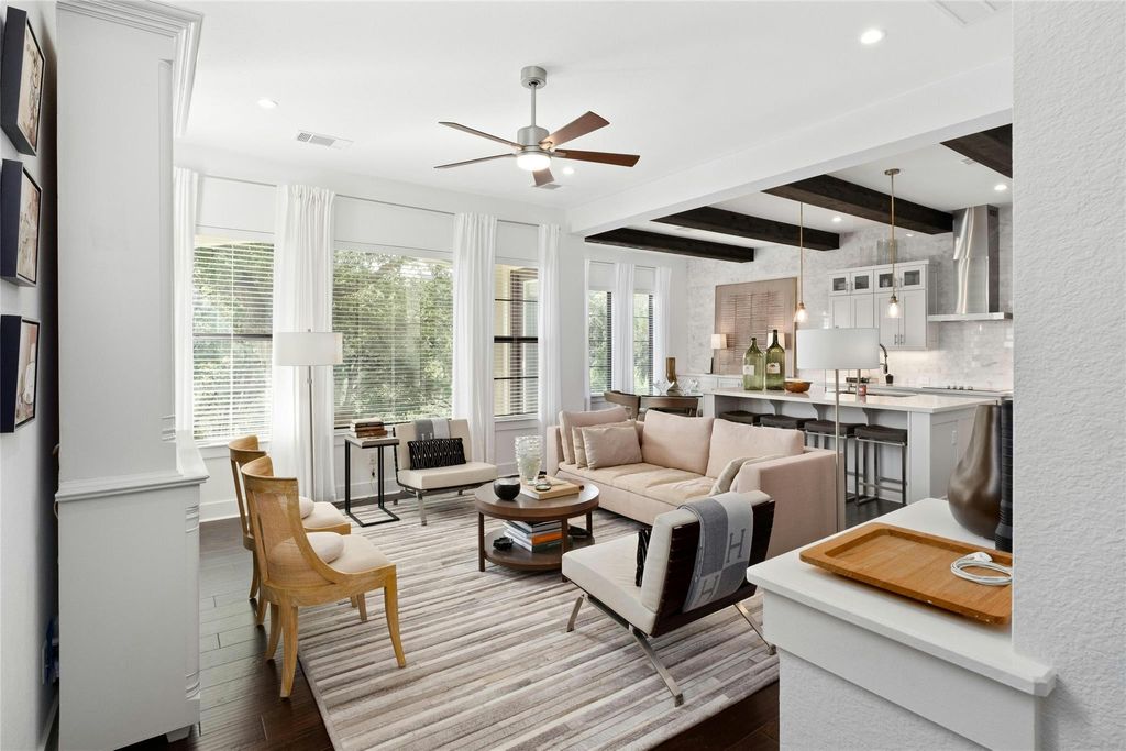 Welcome to 208 Honey Creek Court, a true lock and leave where modern comfort meets elegant luxury in a peaceful setting. This lovely home offers 1,796 square feet of living space with three bedrooms and 2.5 bathrooms, perfect for your next chapter. Step inside and you'll immediately notice the rich hardwood floors and exposed ceiling beams that add a cozy, welcoming vibe. The open floor plan seamlessly connects the living spaces, making it easy to entertain or just hang out. The gourmet kitchen is a real highlight, featuring quartz countertops, stainless steel appliances, and plenty of storage for all your cooking adventures. The primary suite is your personal sanctuary, complete with a spacious bedroom and an ensuite bathroom that boasts a dual vanity. It's the perfect spot to relax and unwind after a busy day. One of the best features of this home is its location at the edge of a serene greenbelt. The covered back patio offers a private spot to enjoy your morning coffee or relax in the evening. With a generous lot, there's plenty of outdoor space for whatever you have in mind. This unique home combines modern amenities with a serene setting. A full-length driveway and direct access to the backyard, which are standout features that set this apart from other homes in the community. Don't miss out on the opportunity to make 208 Honey Creek Court, Unit 29, your new address! The HOA maintains exterior landscaping and maintenance. Backyard can be fenced with HOA approval. Lot size per TCAD - buyer to verify.