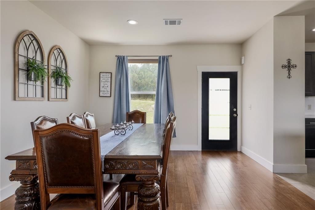 This beautifully designed 3-bedroom, 2-bath home offers 1,714 sq ft of modern comfort and timeless Hill Country charm. Built in 2019, it's perfectly situated just minutes from Lake Travis and surrounded by inspiring views. Step inside to an open floorplan filled with natural light. The living areas and bedrooms showcase rich wood floors, while the kitchen and baths feature classic stone tile. The gourmet kitchen is a true showpiece, with dark espresso cabinetry, gleaming quartz counters, stainless steel appliances, a sleek vent hood, pendant lighting, and a spacious island that's perfect for gathering. The private primary suite is your personal spa retreat, featuring an expanded walk-in shower with a rainfall showerhead, pebble stone flooring, and stunning floor-to-ceiling tile. Thoughtful details continue throughout, including custom built-in shelving, bench seating, and a functional laundry/mudroom. Out back, enjoy a fully fenced, tree-lined yard with plenty of space for gardening, play, or relaxation. Convenience is at your doorstep"”just half a mile to Lago Vista schools, less than a mile to the new Brookshire Brothers grocery store, and minutes from city amenities. Residents also enjoy access to Lago Vista's waterfront parks, marina, boat ramps, golf course, pool, fitness center, and more. Don't miss your chance to own this Hill Country gem near Lake Travis!